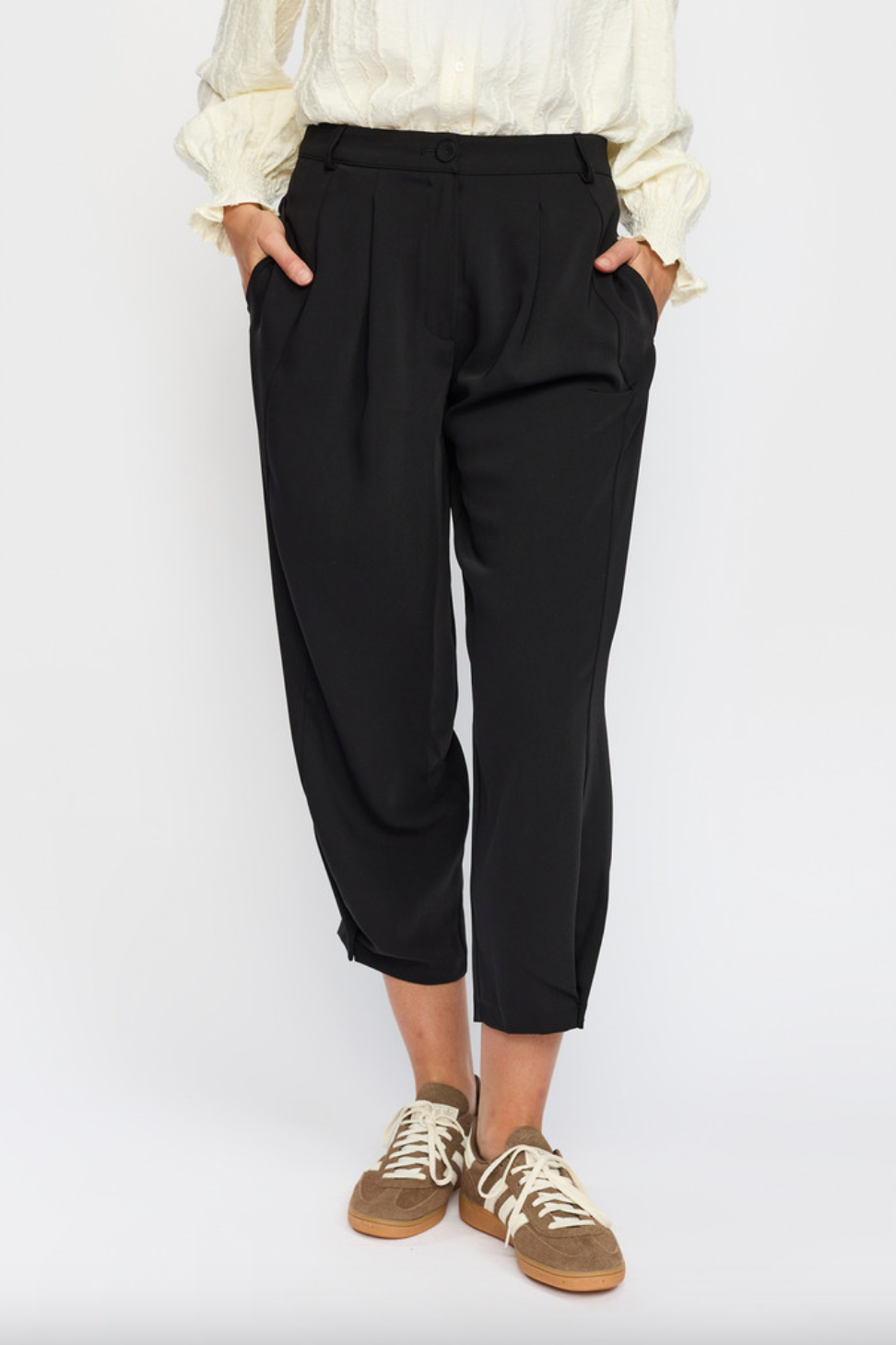 Ballong dressbukse med stilige detaljer. Knapper på anklene som kan åpnes for å lage vide ben.