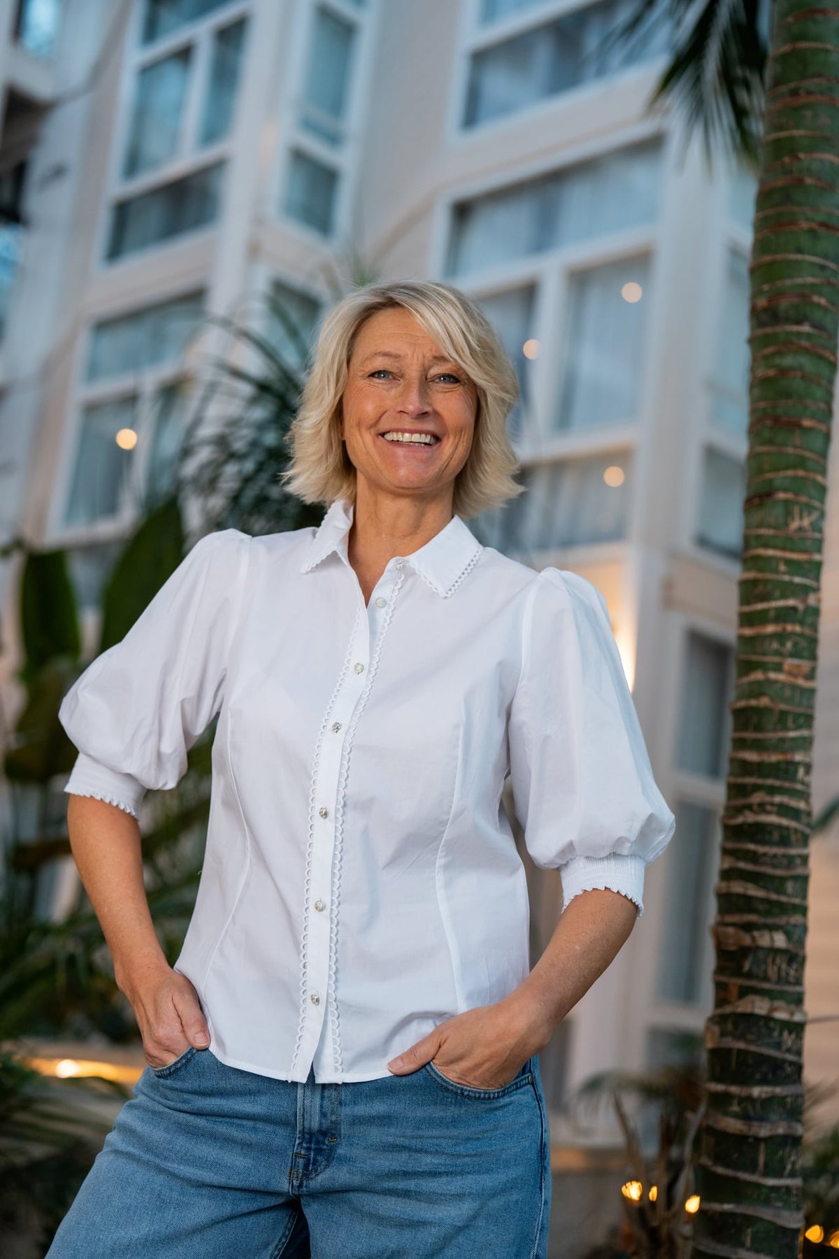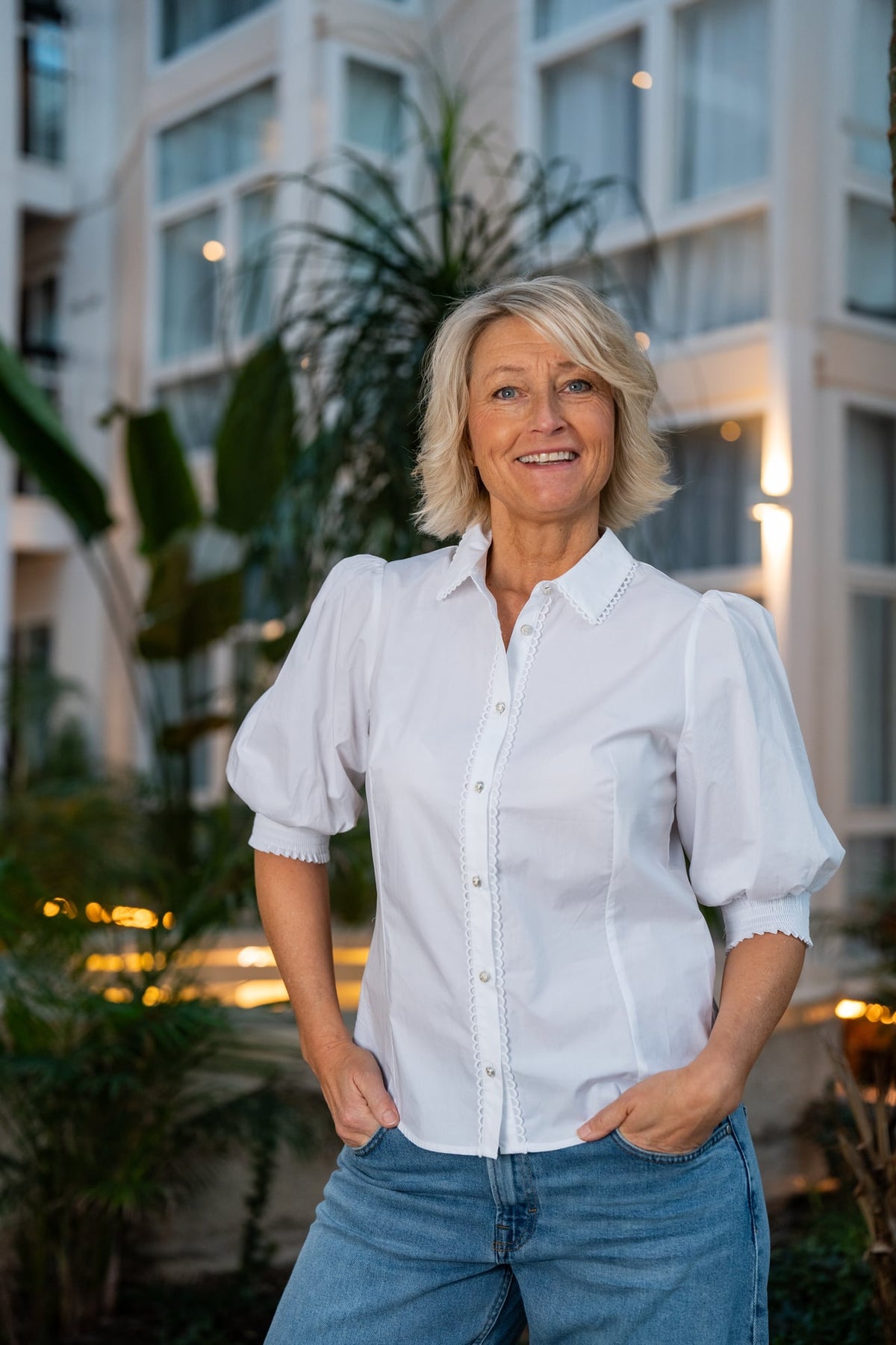 Vi anbefaler at du går opp én størrelse i denne blusen.