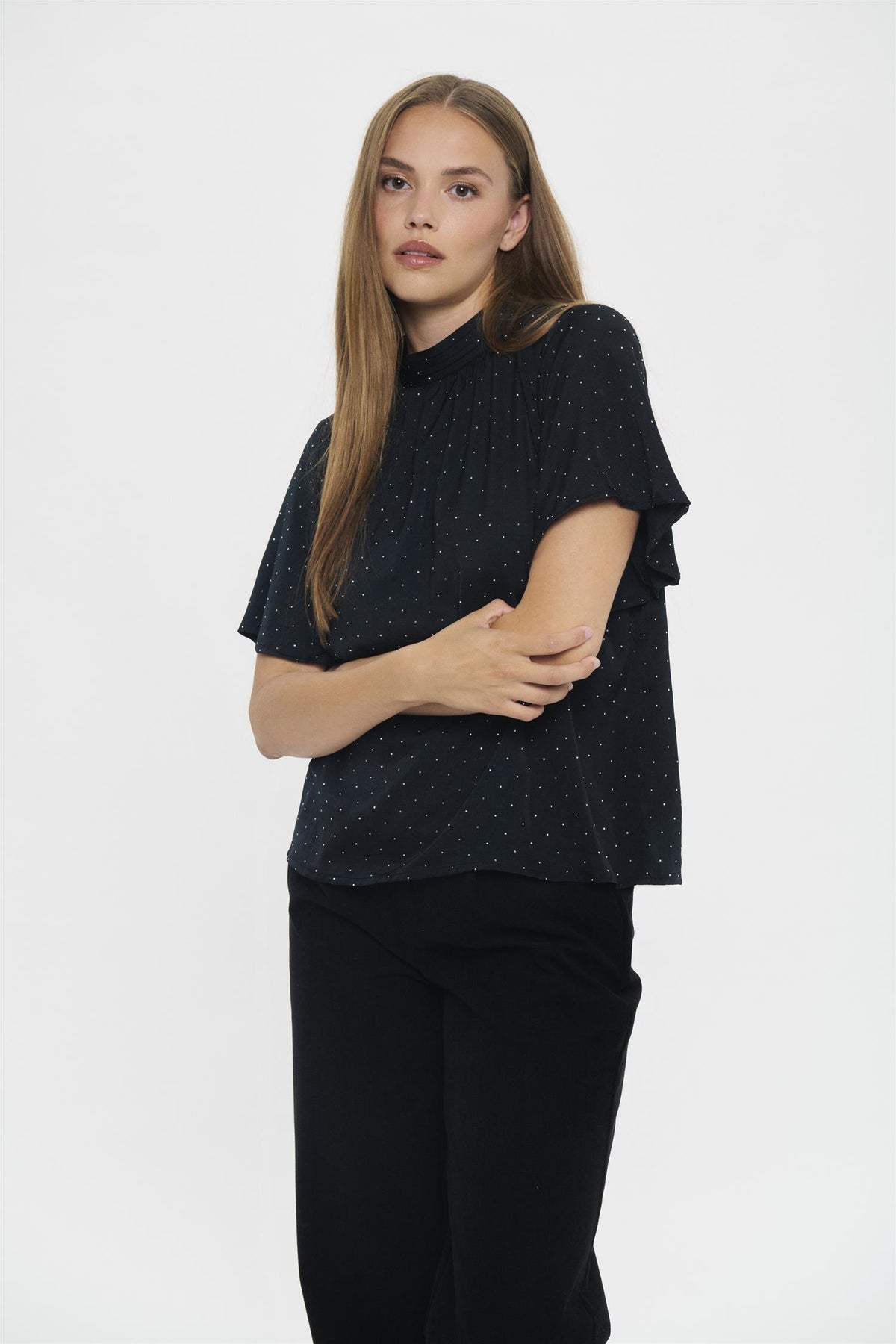 NaileenSZ Top er en stilren og komfortabel bluse laget av 100% polyester, perfekt for enhver anledning. Den tidløse svarte fargen gjør den lett å kombinere med ulike antrekk, fra hverdagslig til mer formelle anledninger.