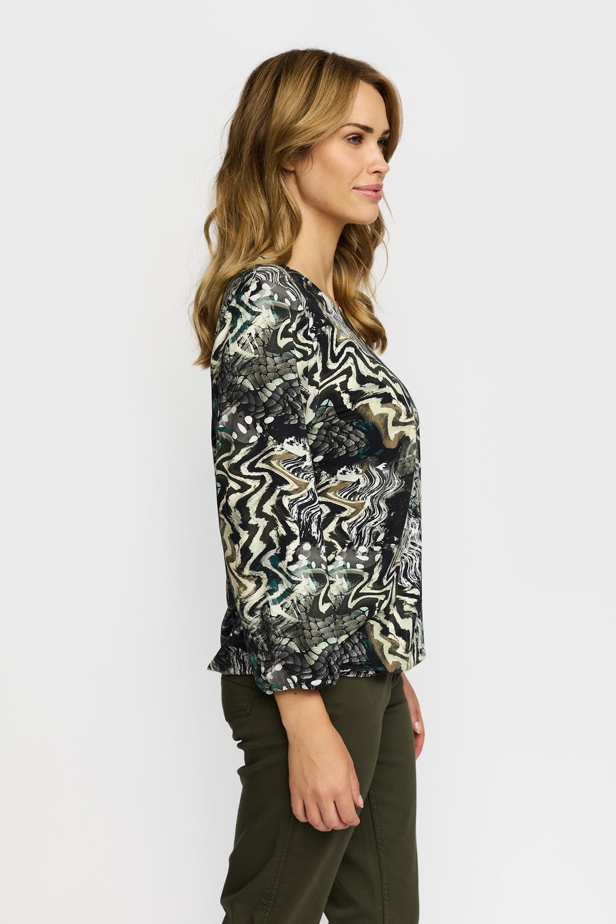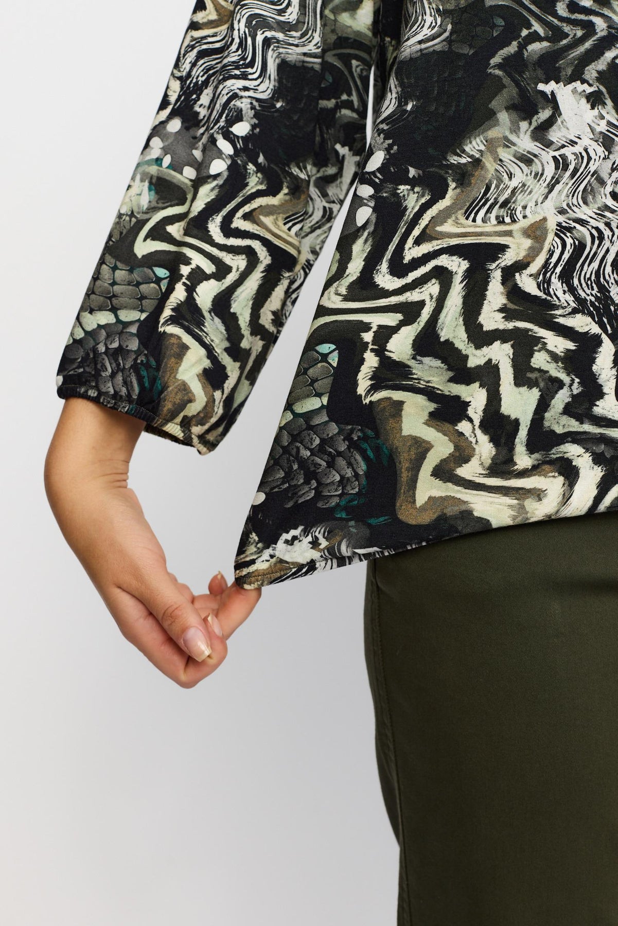 Fin bluse fra 2-biz i den herlige stretchviskosen. Blusen har strikk i livet nede og på ermene.