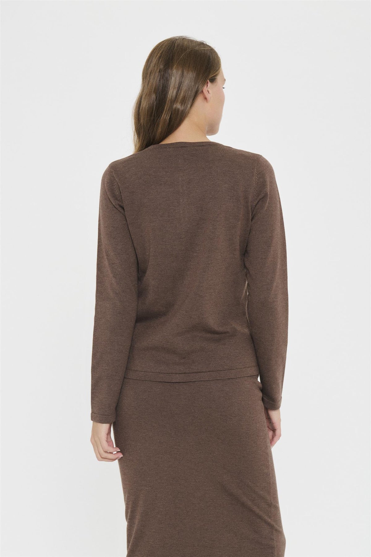 Den A8661 MilaSZ R-Neck Cardigan er en elegant og komfortabel strikkegenser som passer perfekt til enhver anledning. Med sin myke og varme Fondue Fudge Melange-farge, gir denne cardiganen et stilfullt preg til garderoben din.
