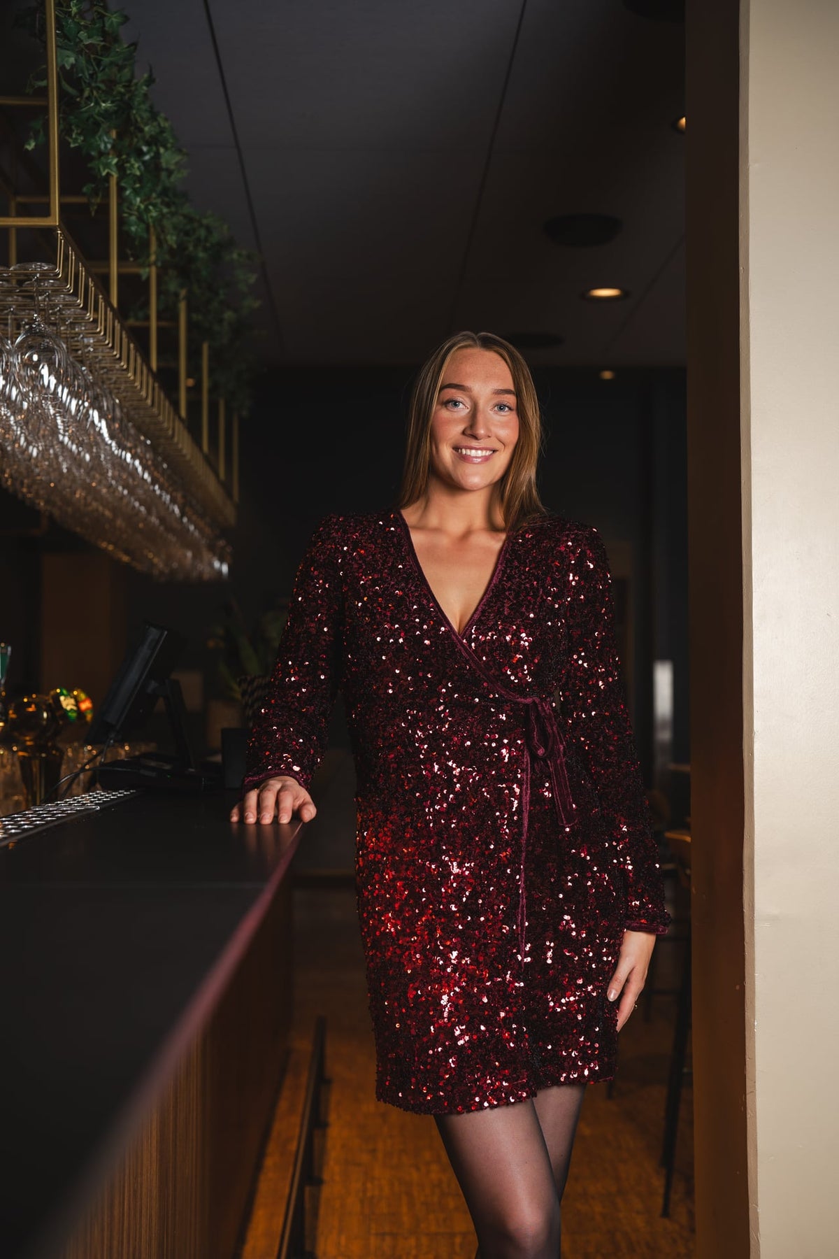 Oppgrader festgarderoben din med YASELLE LS WRAP DRESS - SHOW, en elegant kjole laget for å fange oppmerksomheten. Den glitrende paljettstoffet gir en iøynefallende look, perfekt for festlige anledninger.