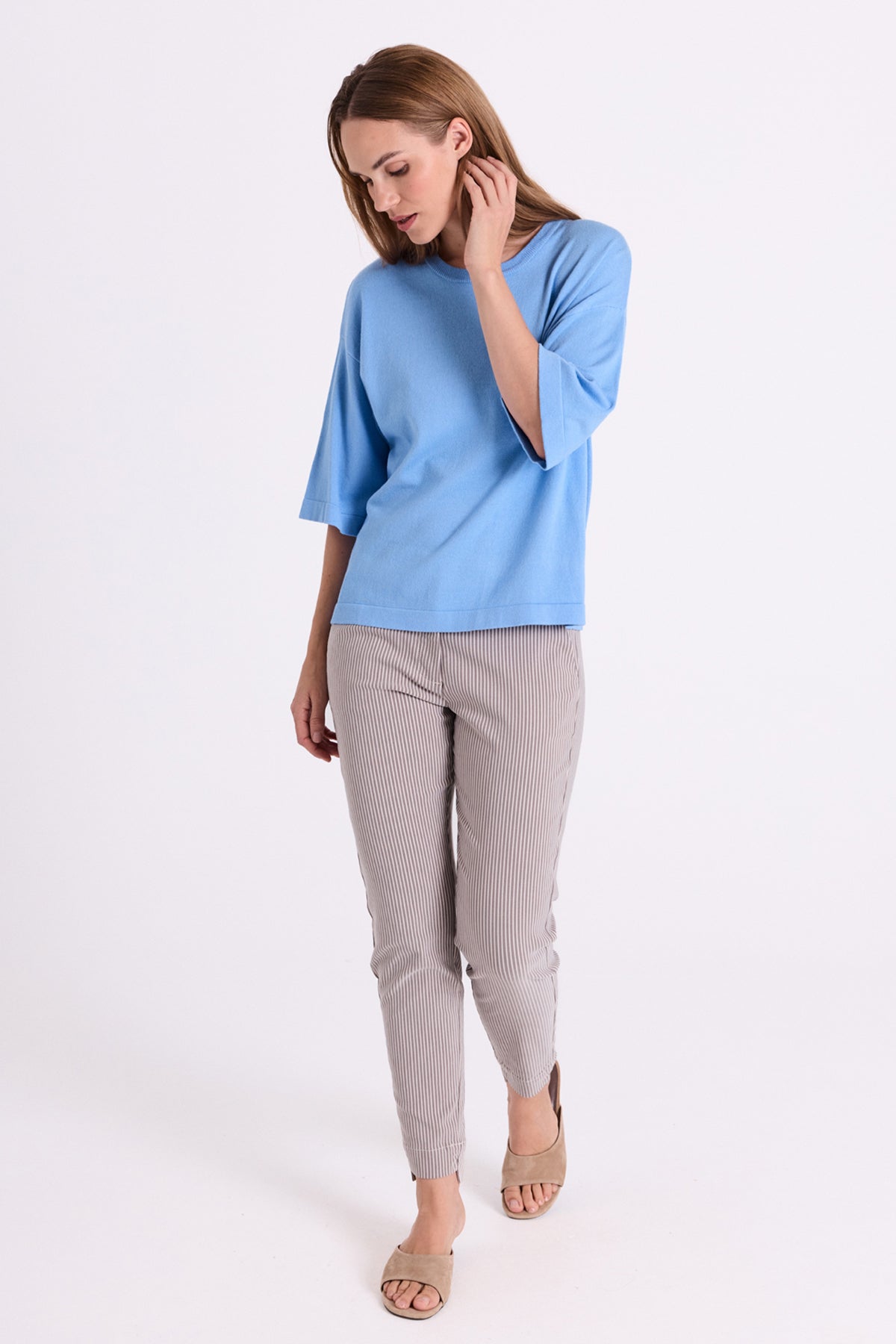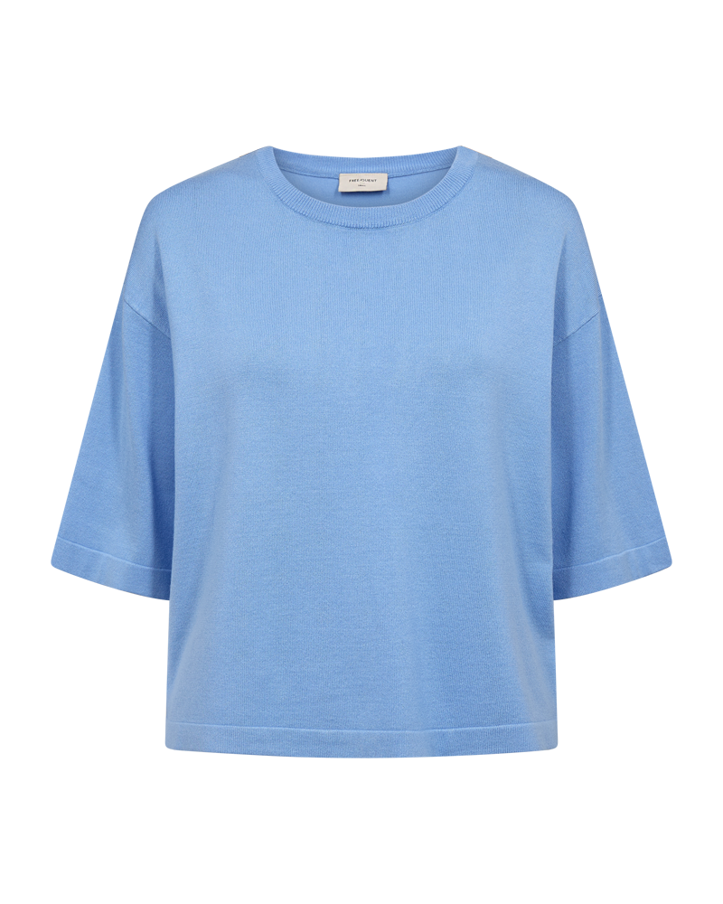 FQCONNY-PULLOVER i fargen Vista Blue er et stilrent og komfortabelt plagg som passer perfekt til hverdagsbruk. Den myke blandingen av viskose og polyamid gir en behagelig følelse mot huden, samtidig som den holder formen godt.