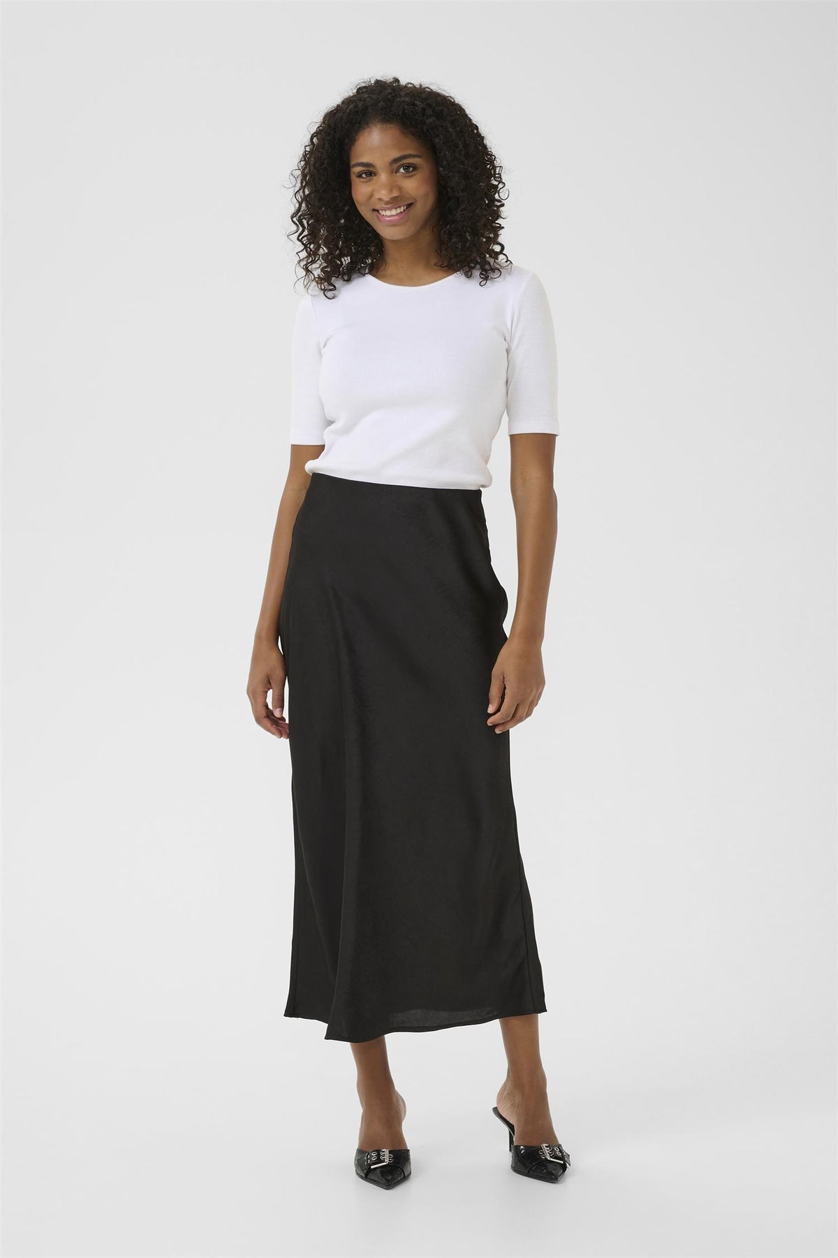 KAmolly Skirt er en stilren og moderne skjørt som gir et elegant preg til antrekket ditt. Med sin høye midje og tettsittende passform, er dette skjørtet perfekt for en kveld ute eller en spesiell anledning.