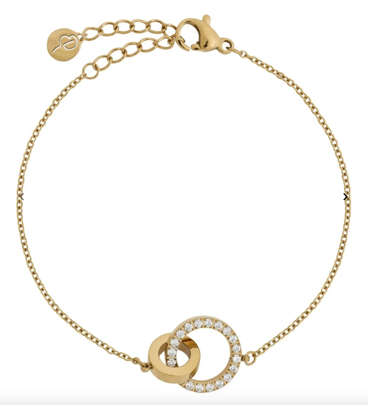 Eternal Orbit-serien er designet med inspirasjon fra Edblads klassiker Eternity. Den vakre dekorasjonen har en liten ring som lenker sammen med en stor, der klare steiner er festet rundt hele oversiden. Eternal armbånd bruker gjerne uansett anledning og det er også en fin og populær gave. Vises her i blankt 14K gullbelegg. Kombiner gjerne med flere armbånd fra Edblad.