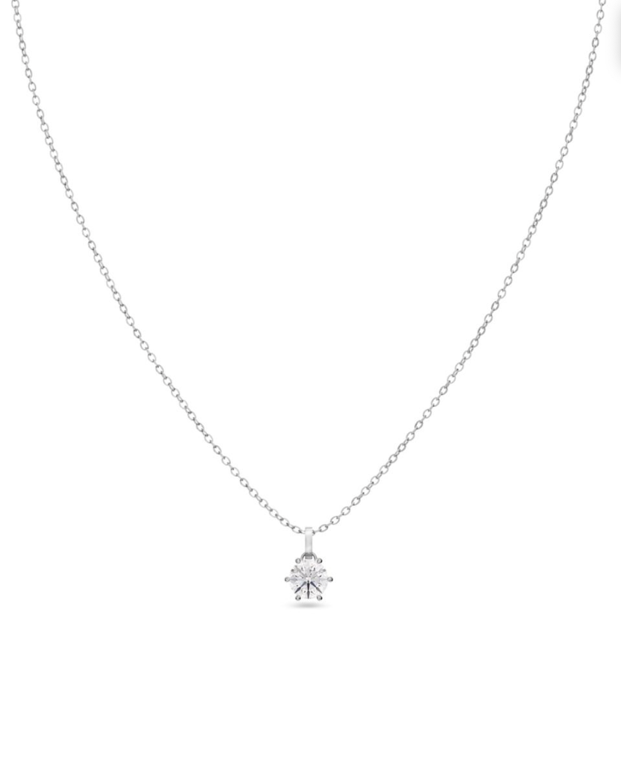 I den klassiske serien Crown har du her et halskjede der den klare steinen er elegant innfattet med seks klør. Crown halskjede blir en favoritt alle dager i uken og gjerne i layering med flere halskjeder og kjeder. Den innfattede steinen henger i et ankerkjede og vises her i blankt rustfritt stål. Serien Crown er en høyt verdsatt gave.