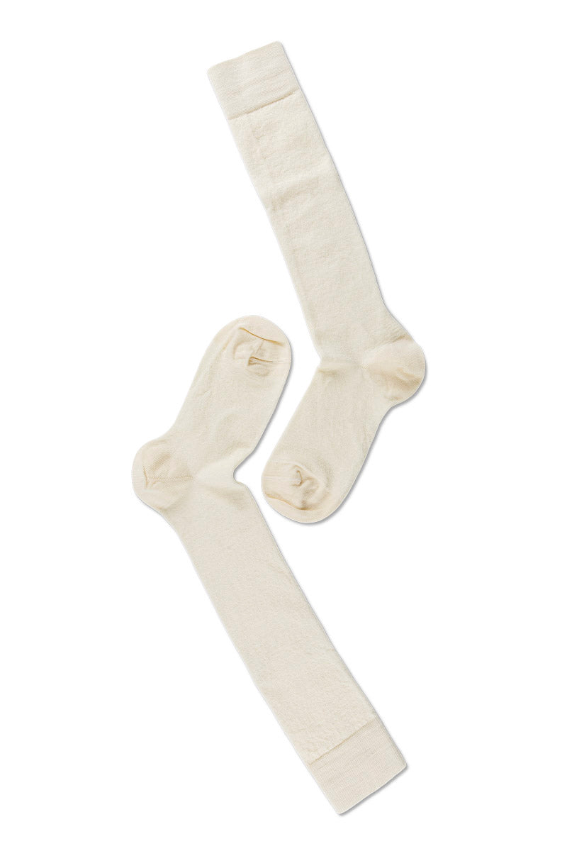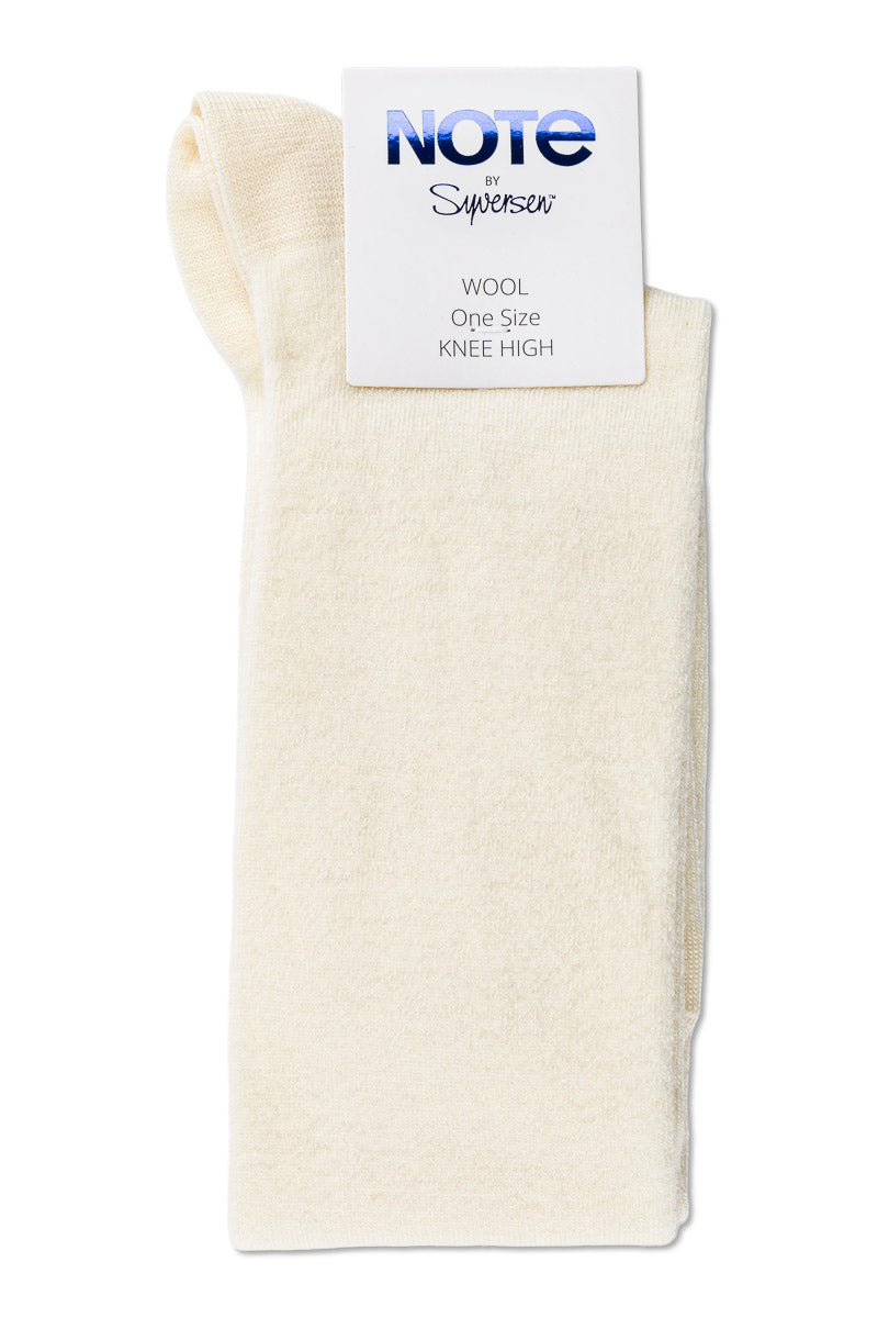 Note Woman Flat Knit Wool Knee-High er et stilrent og komfortabelt valg for de som ønsker å tilføre et snev av eleganse til antrekket. Disse knelengde strømpebuksene i offwhite er laget av høykvalitetsmaterialer som gir både varme og støtte, perfekt for kjøligere dager.