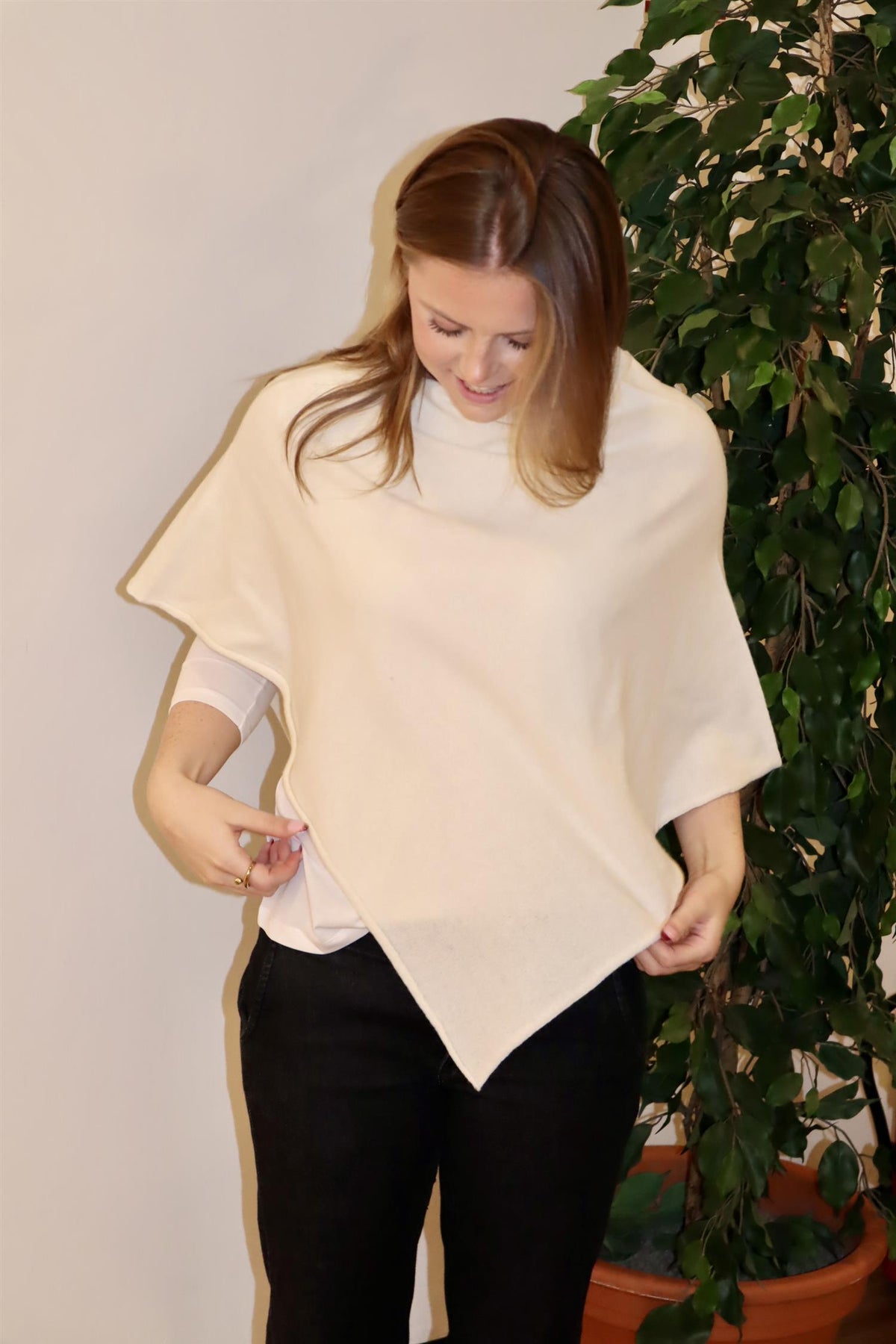 Vår superfine ullponcho er laget i en tynn og lett ullkvalitet som gir behagelig varme uten å føles tung. Ponchoen er praktisk, allsidig og passer til enhver stil – enten du vil bruke den over en genser på kalde dager, som et elegant lag over kjolen, eller som et lett plagg på reise.