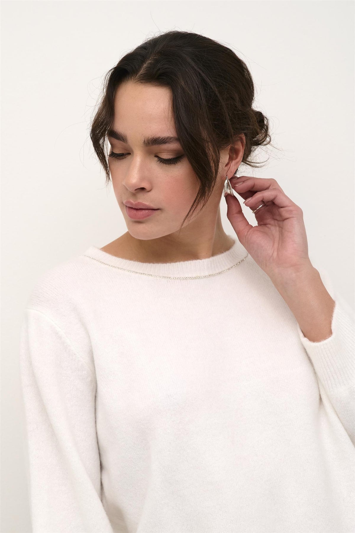 KAmeridith Pullover er en stilren og komfortabel genser som passer perfekt til hverdagsbruk. Den myke strikken gir en behagelig følelse mot huden, samtidig som den holder deg varm. Med sin klassiske hvite farge, er denne genseren lett å style med ulike antrekk.