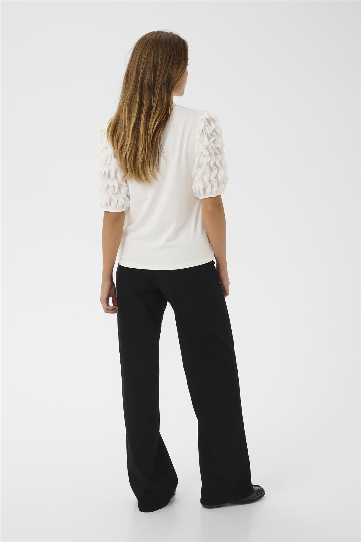 KAlinda Frill T-Shirt er en elegant og komfortabel t-skjorte som kombinerer stil med funksjonalitet. Laget av et mykt og stretchy materiale, gir denne t-skjorten en perfekt passform for enhver anledning.