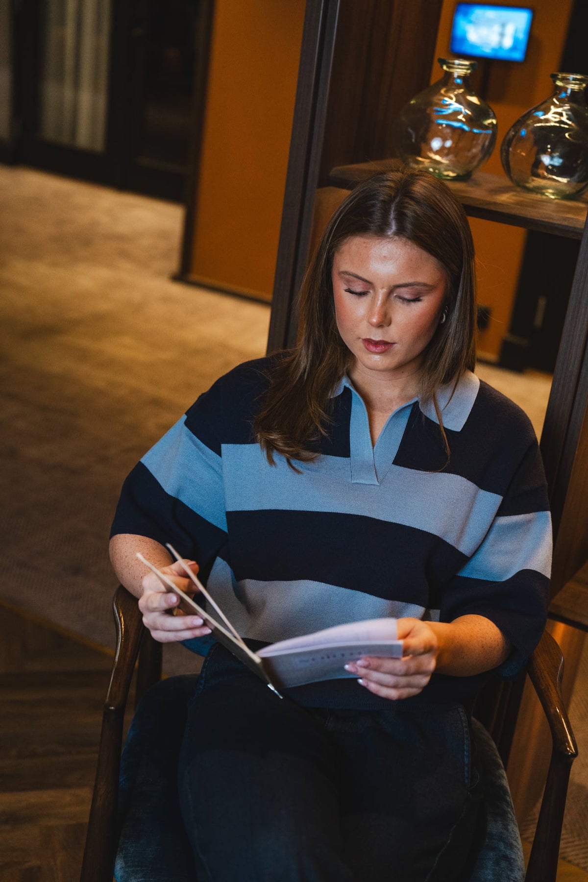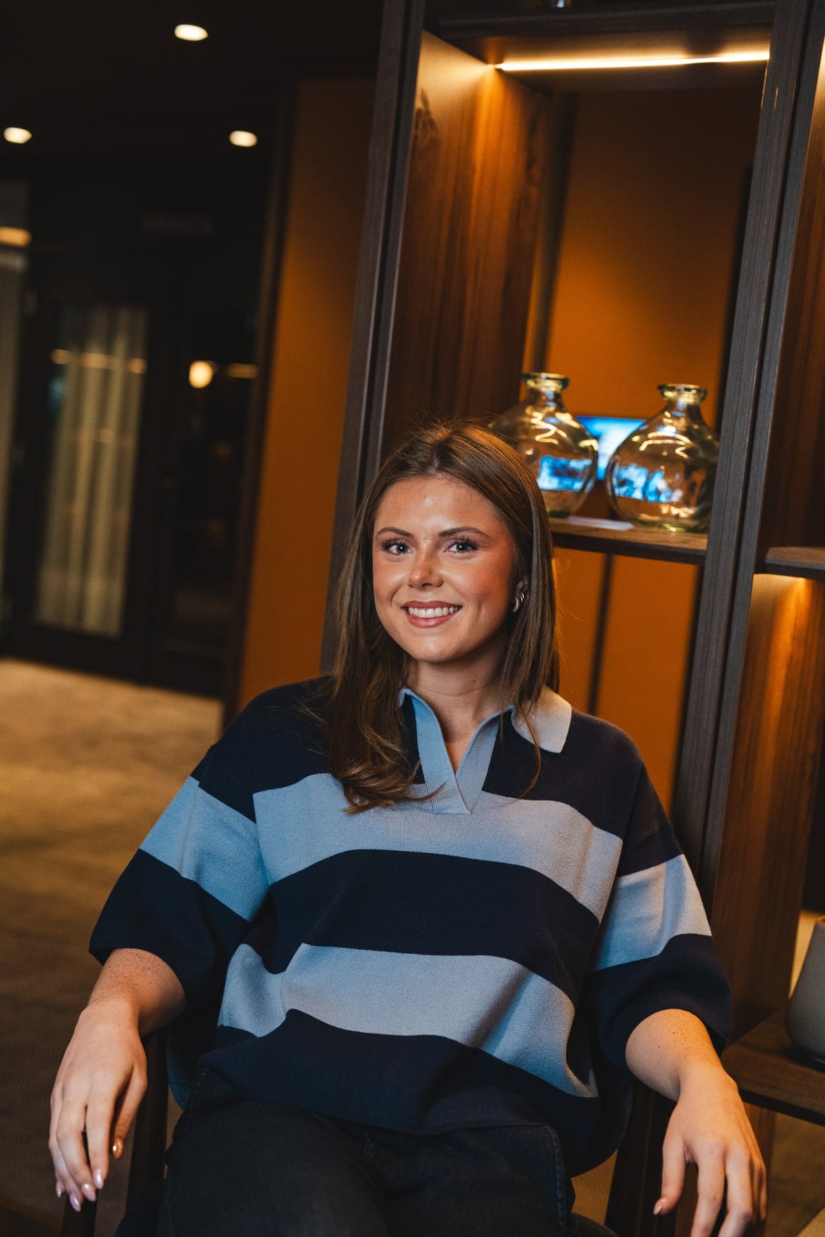 KBDiana Doddie Tee Polo er en stilren t-skjorte med en løs passform og en moderne ombre blå stripe. Denne t-skjorten er perfekt for hverdagsbruk og gir et friskt preg til garderoben din.