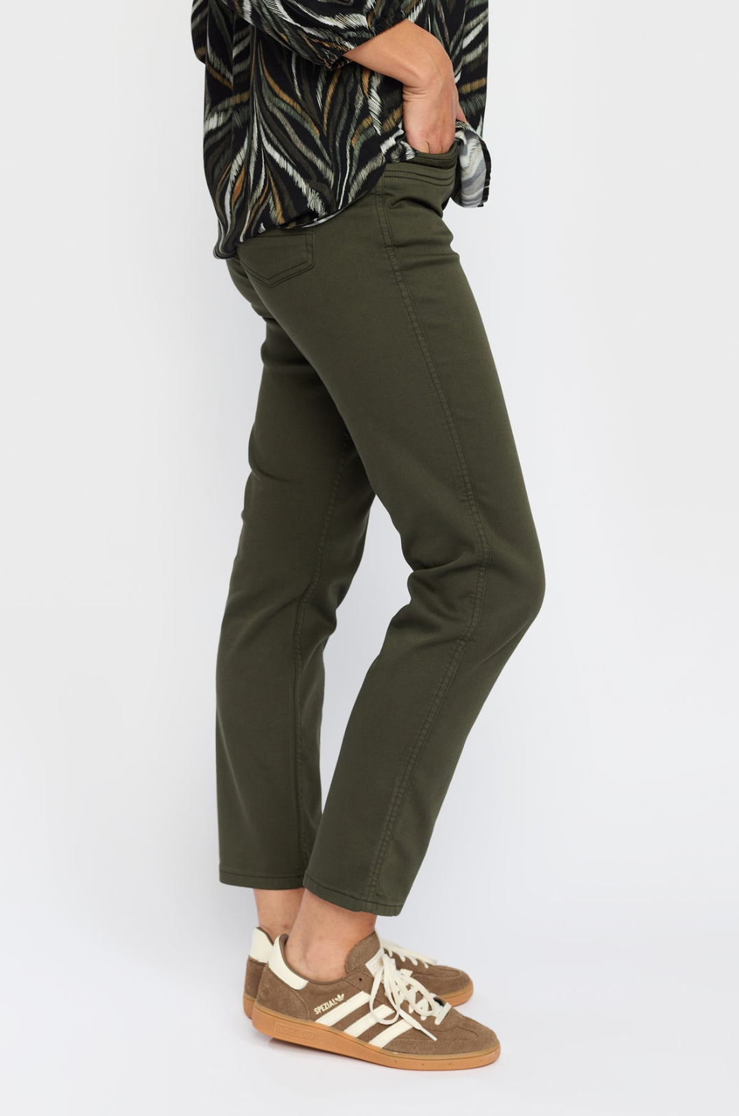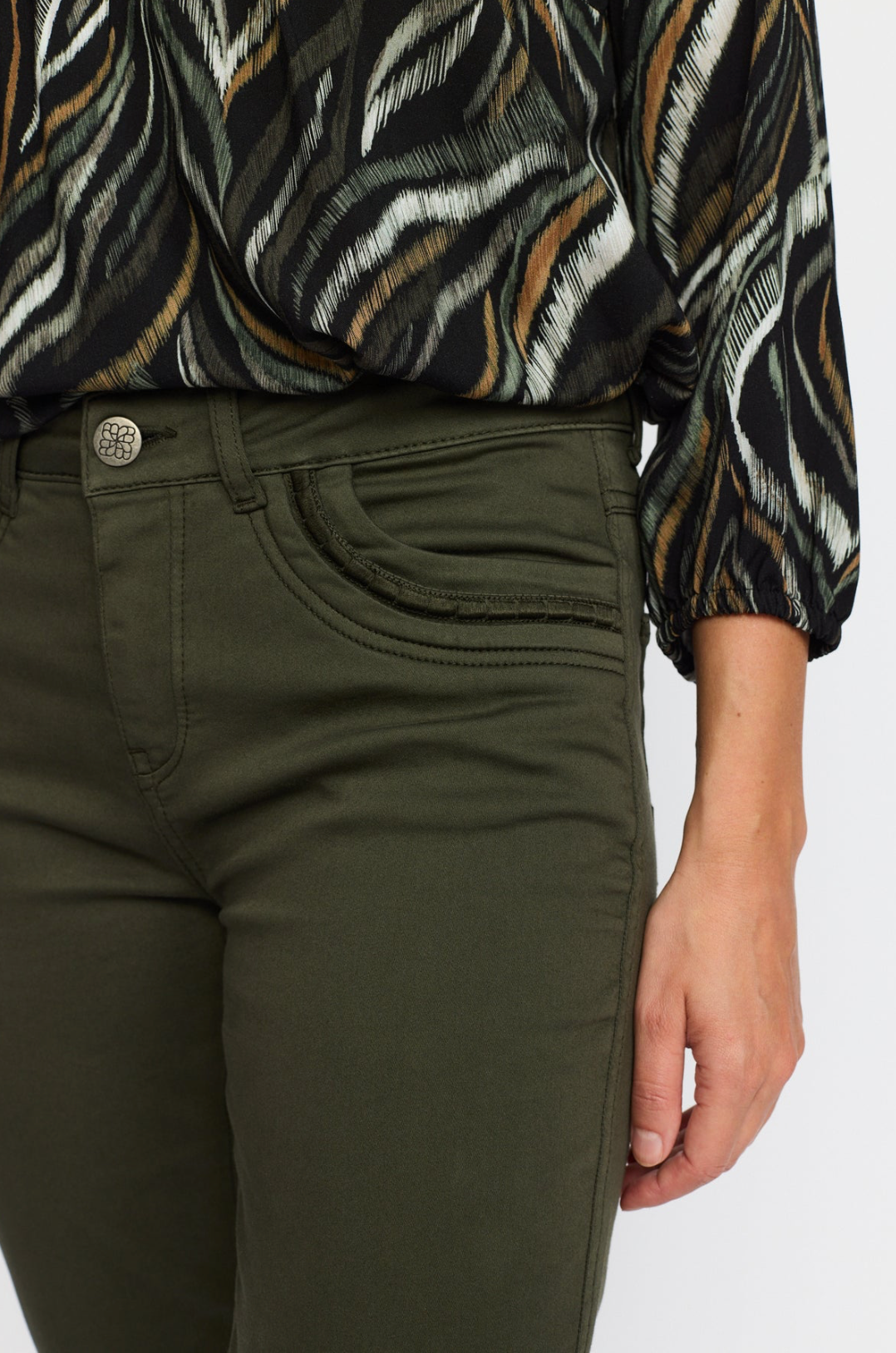 Bomullsbukse med rette ben og god stretch. Fine detaljsømmer på lommene.