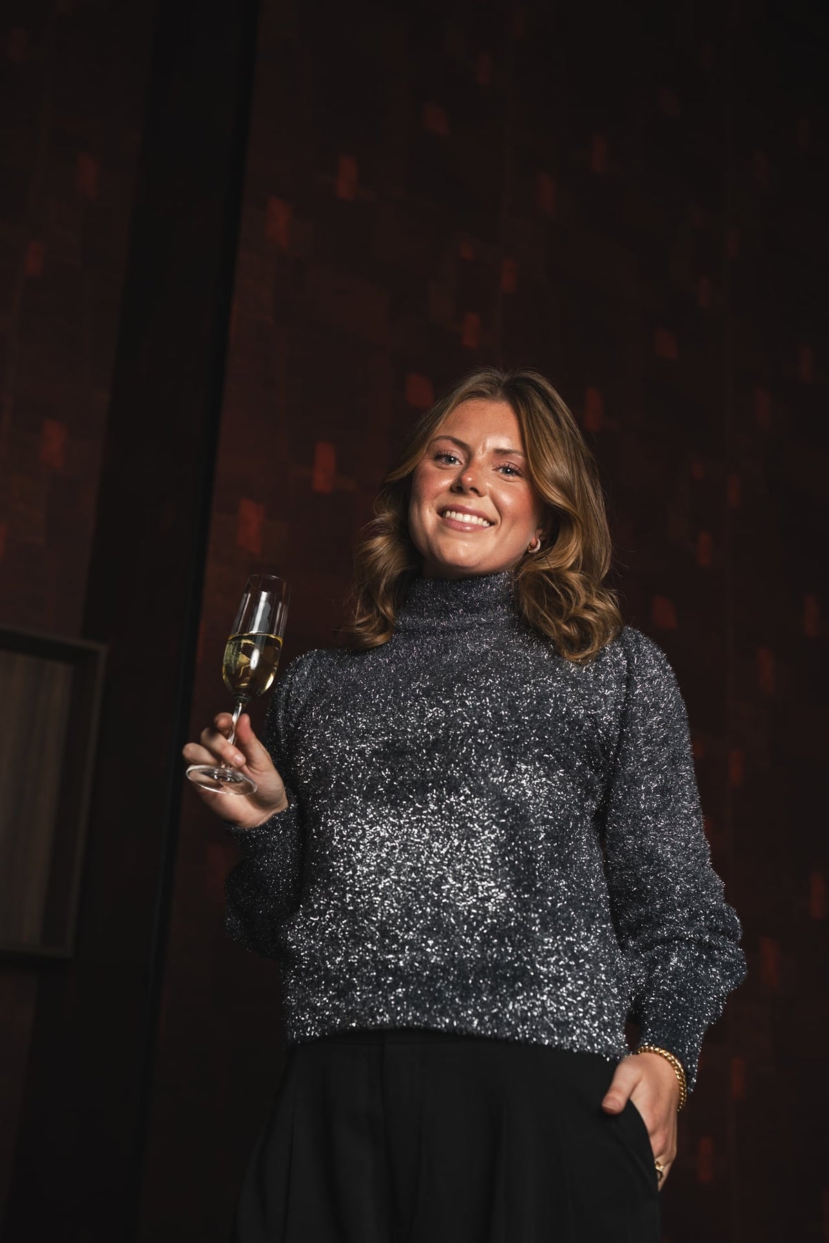 Farge: Mørk grå med sølv lurex, som tilfører en subtil glans og gjør genseren ekstra spesiell.