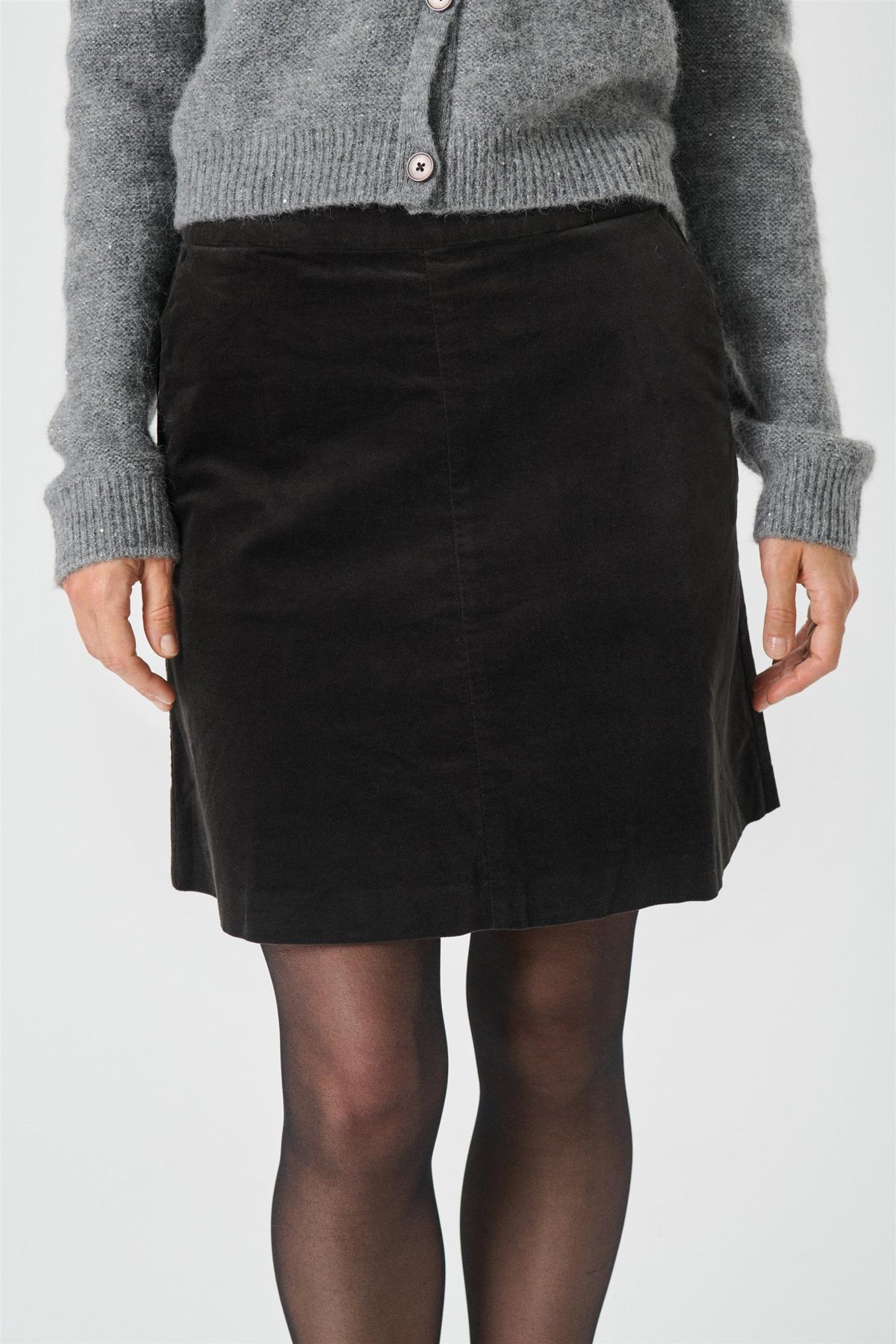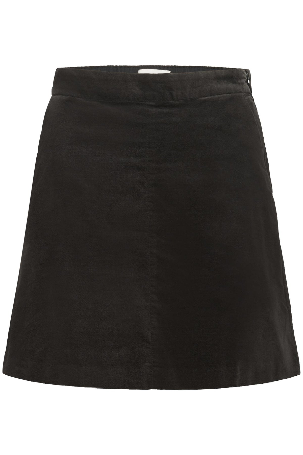 Elegant og komfortabel svart A-formet skjørt fra LingsPW SK, perfekt for enhver anledning. Laget av myk bomull med en touch av elastan for ekstra bevegelighet, gir dette skjørtet en flatterende passform som sitter midt på låret.