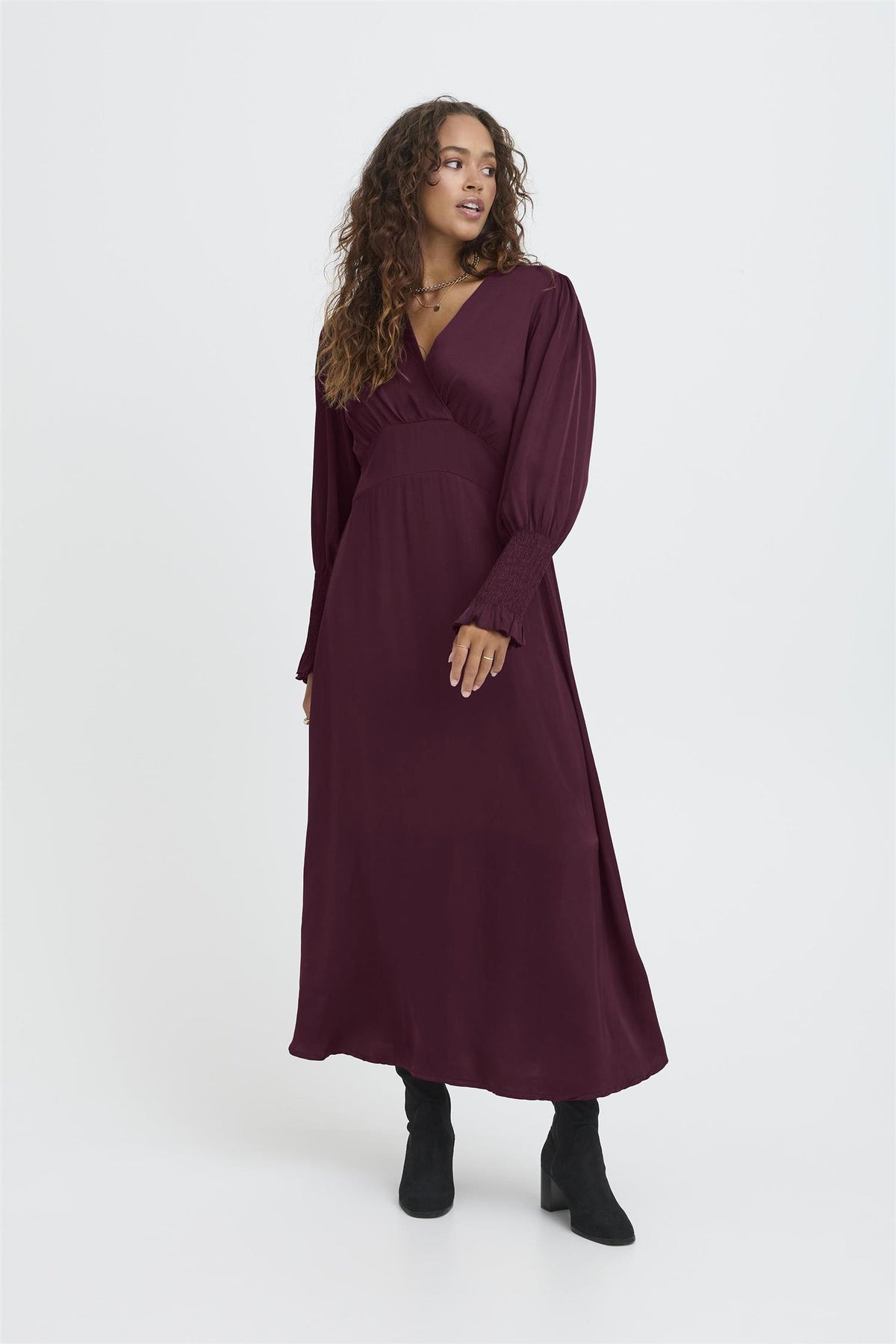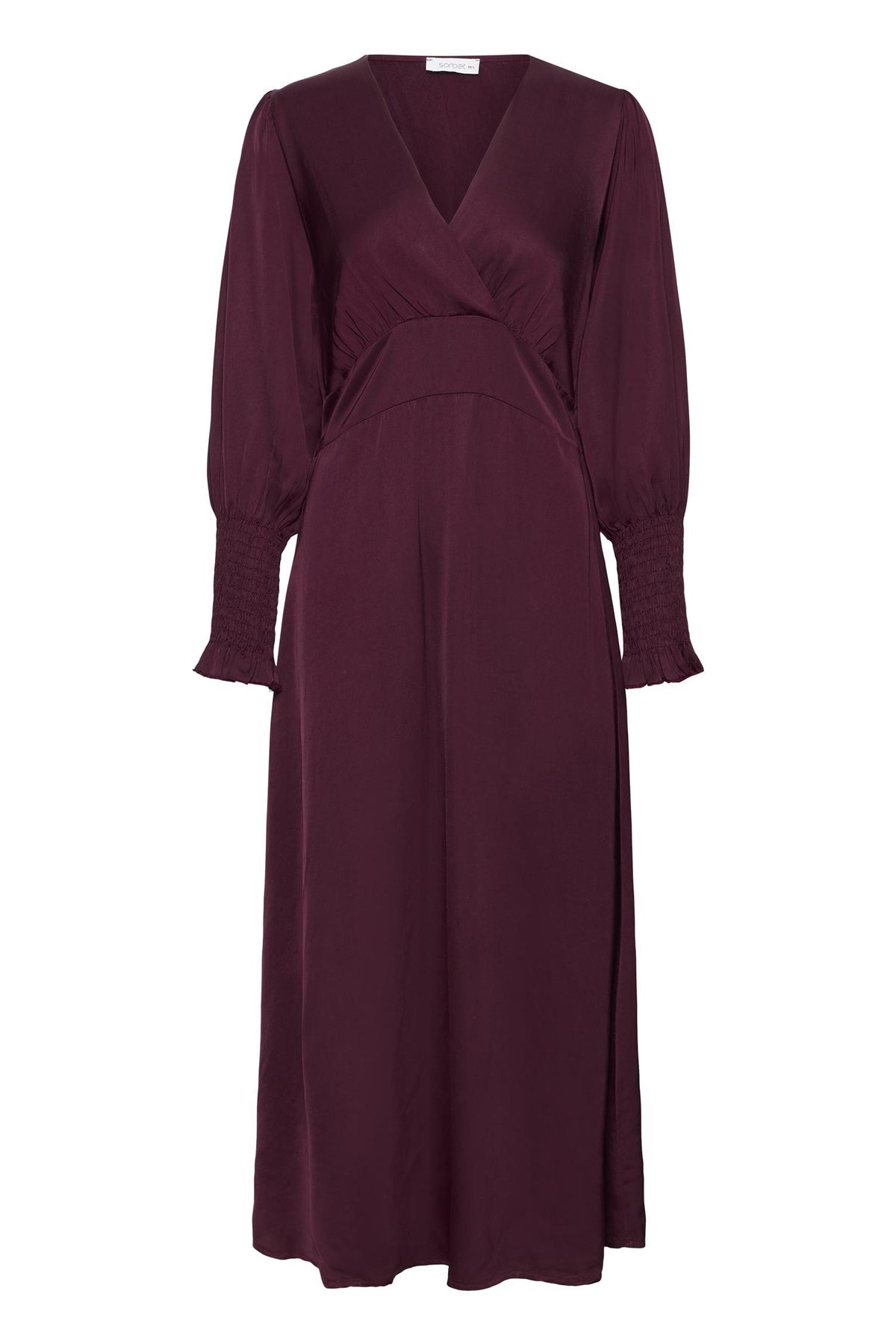 SBOLIVIA SOLID DRESS i en dyp cabernetfarge er et elegant valg for enhver anledning. Denne kjolen er laget av 100% viskose, som gir en myk og behagelig følelse mot huden.