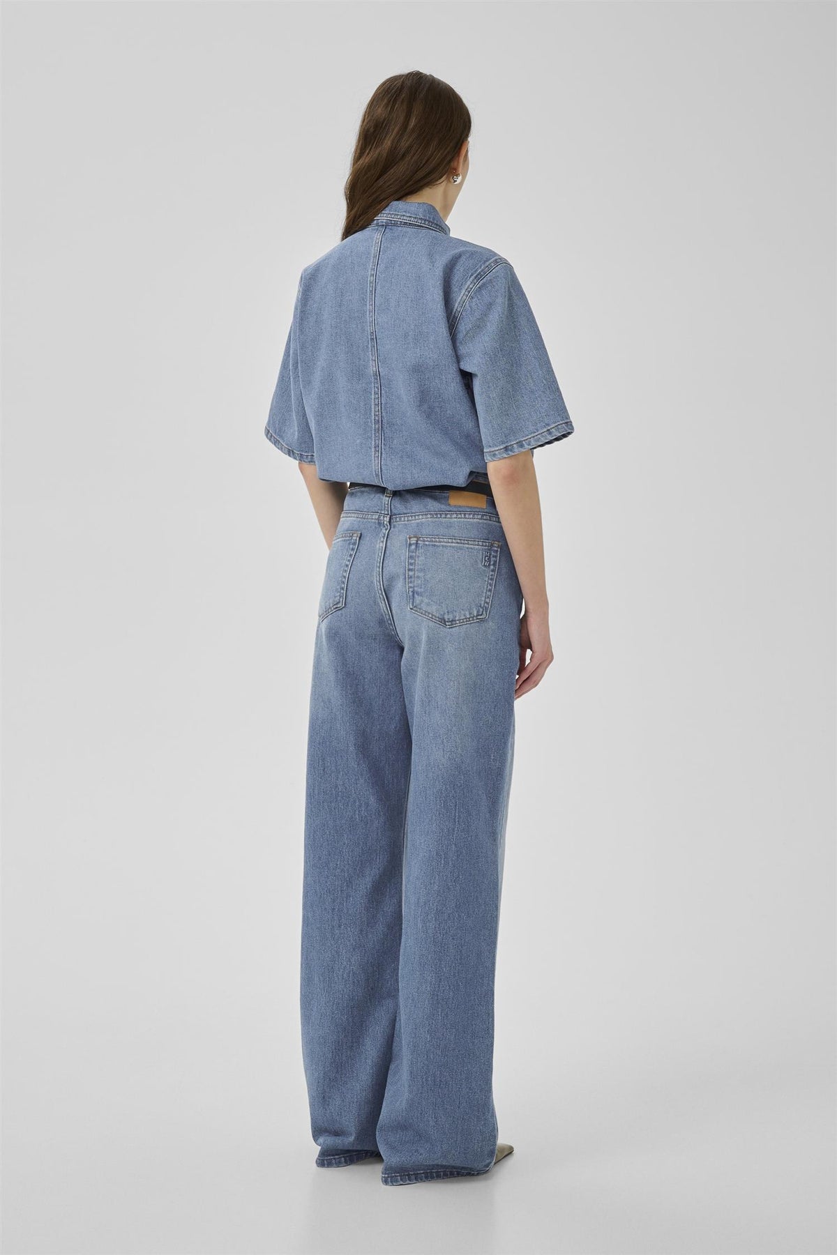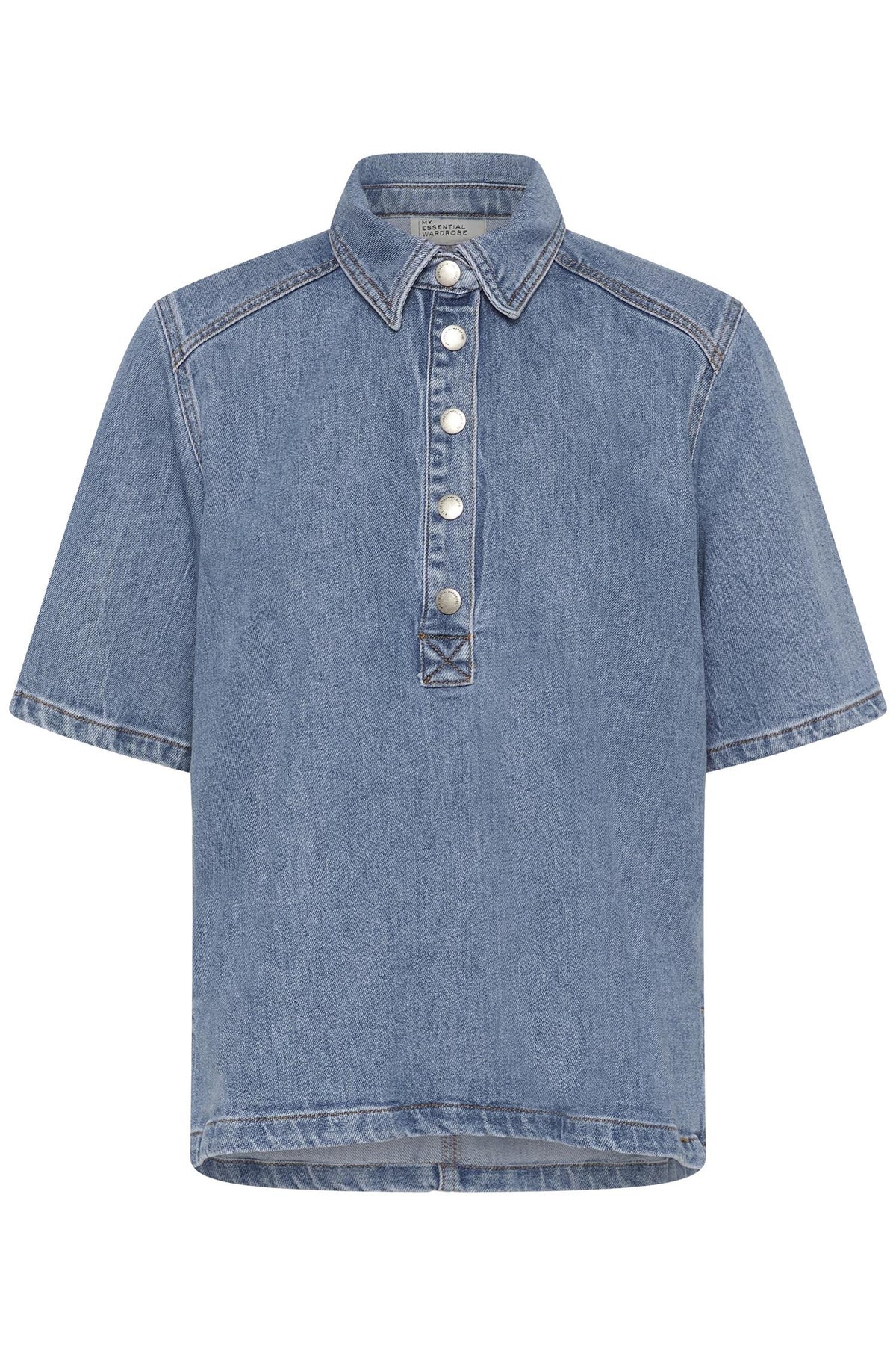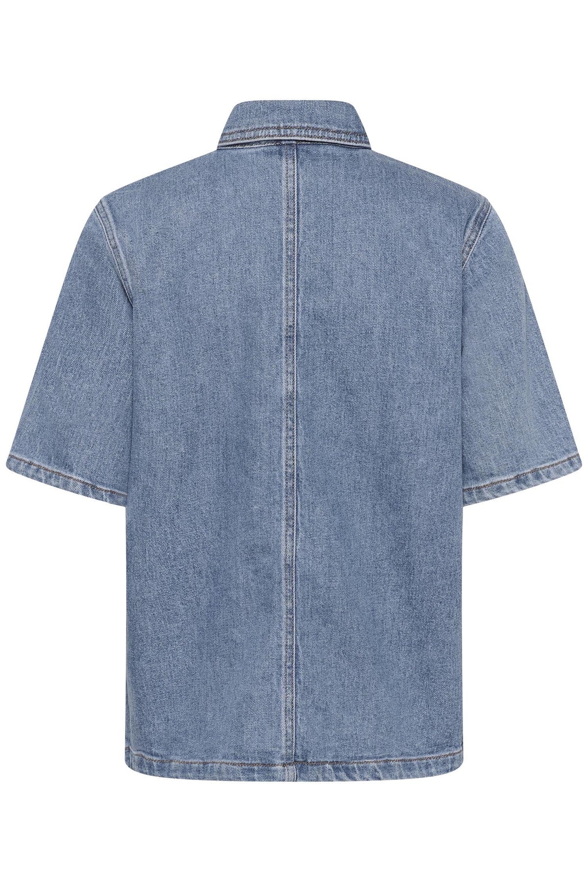 AbinaMW 139 Boxy Blouse er en stilig og komfortabel bluse i en mellomblå vask. Den baggy passformen gir en avslappet look, perfekt for hverdagsbruk.