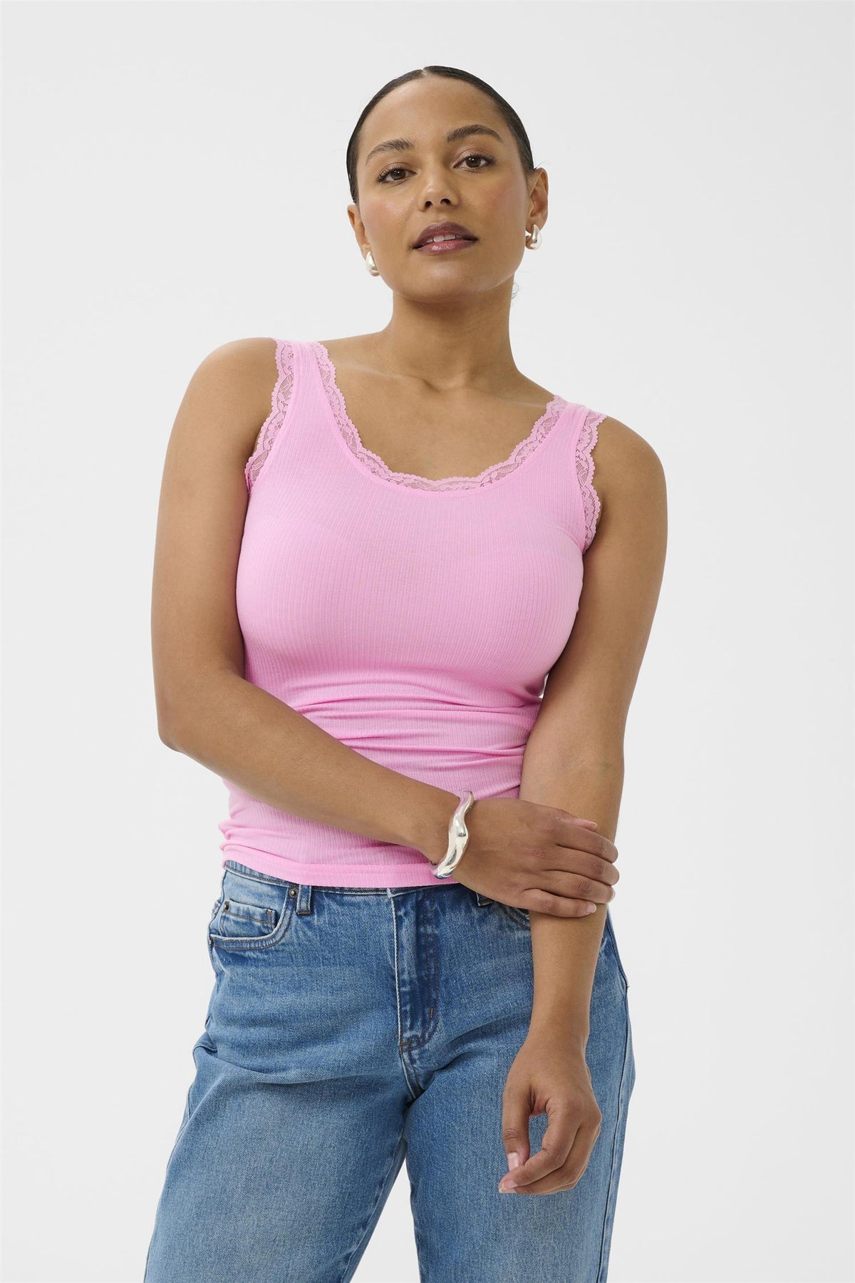 KAomi toppen i fargen Pink Frosting er en stilren og komfortabel t-skjorte som passer perfekt til hverdagsbruk. Med sin slanke passform gir den et moderne preg til enhver garderobe.