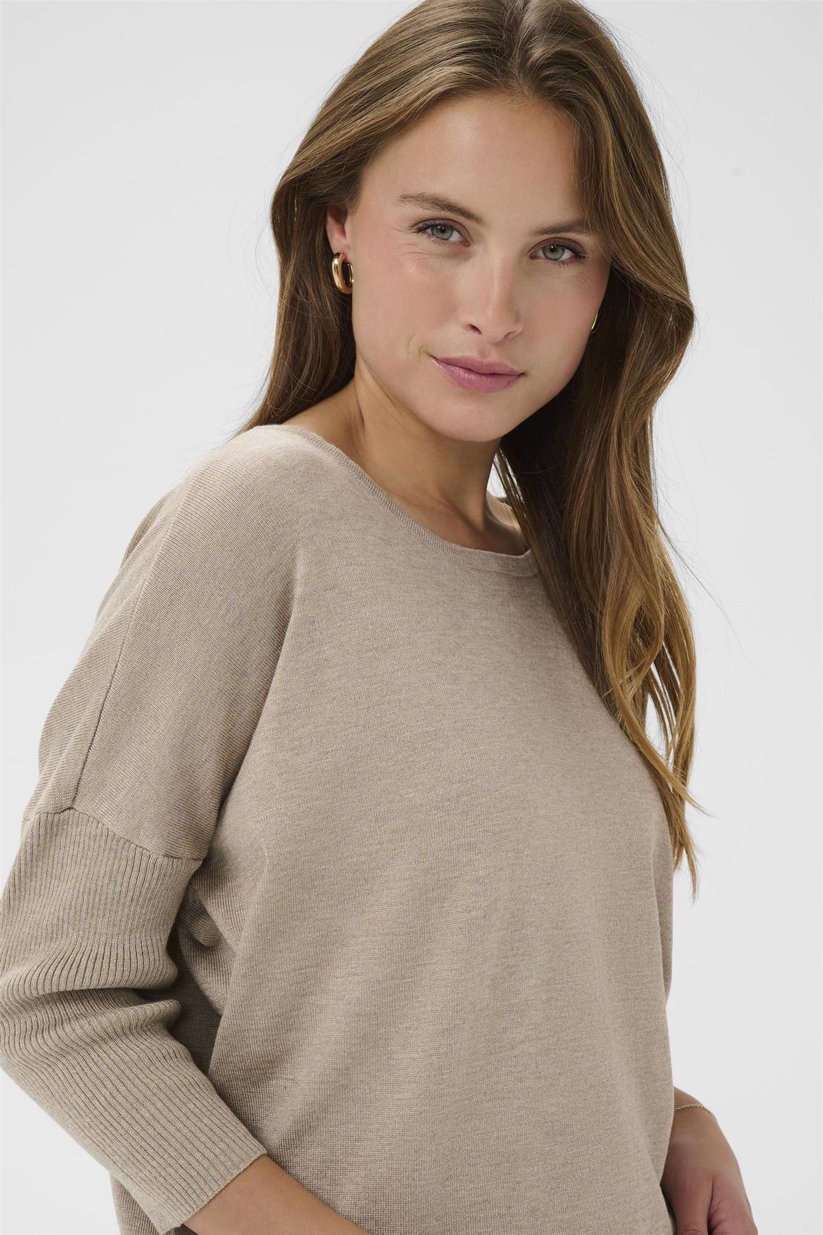 MilaSZ R-Neck Pullover i Greige Melange er en stilren og komfortabel genser laget for avslappede anledninger. Den myke viskosen gir en behagelig følelse mot huden, mens polyamid tilfører styrke og holdbarhet.