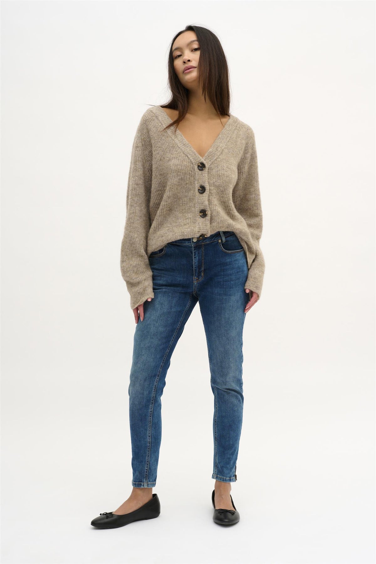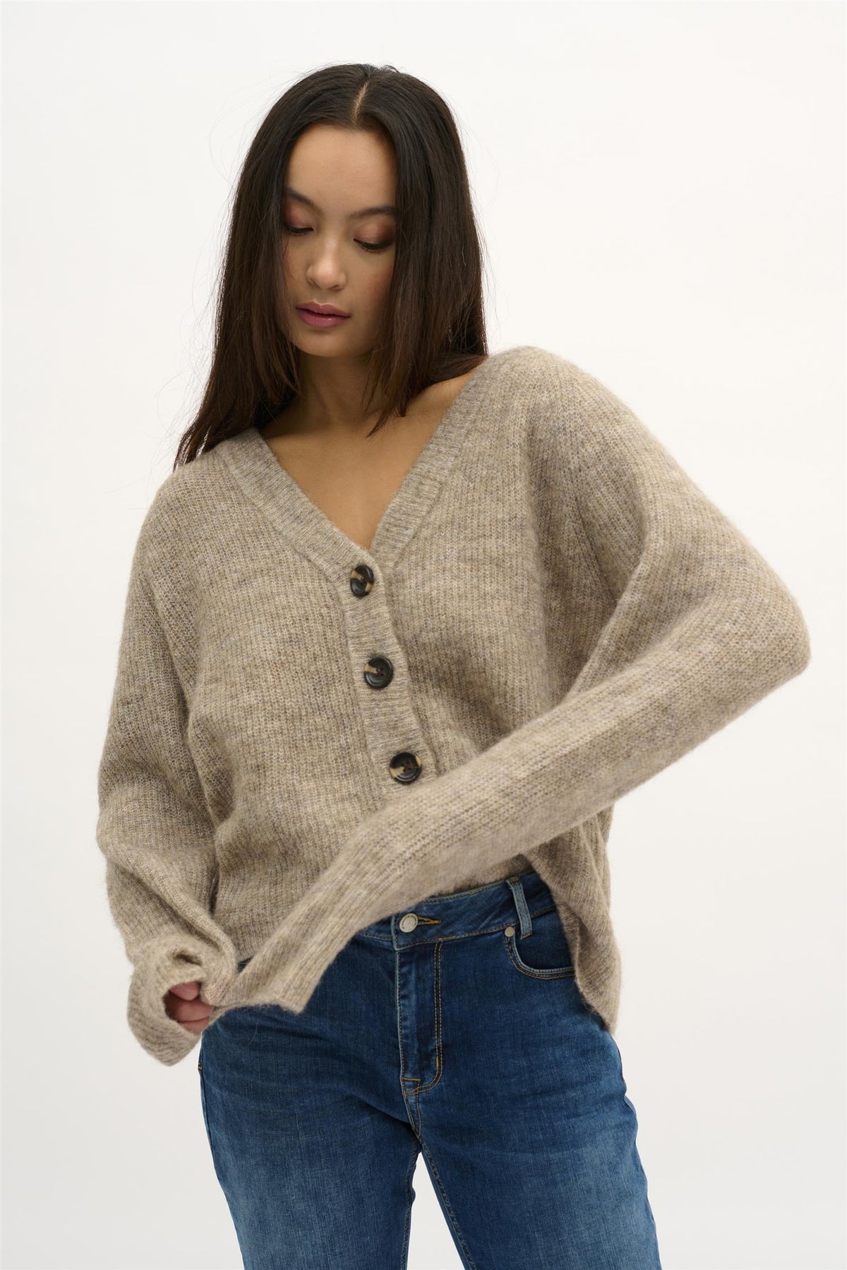 04 THE KNIT CARDIGAN er en stilren og komfortabel strikkegenser i en vakker Dune Melange-farge. Denne genseren er perfekt for en avslappet stil og gir et elegant preg til ethvert antrekk.