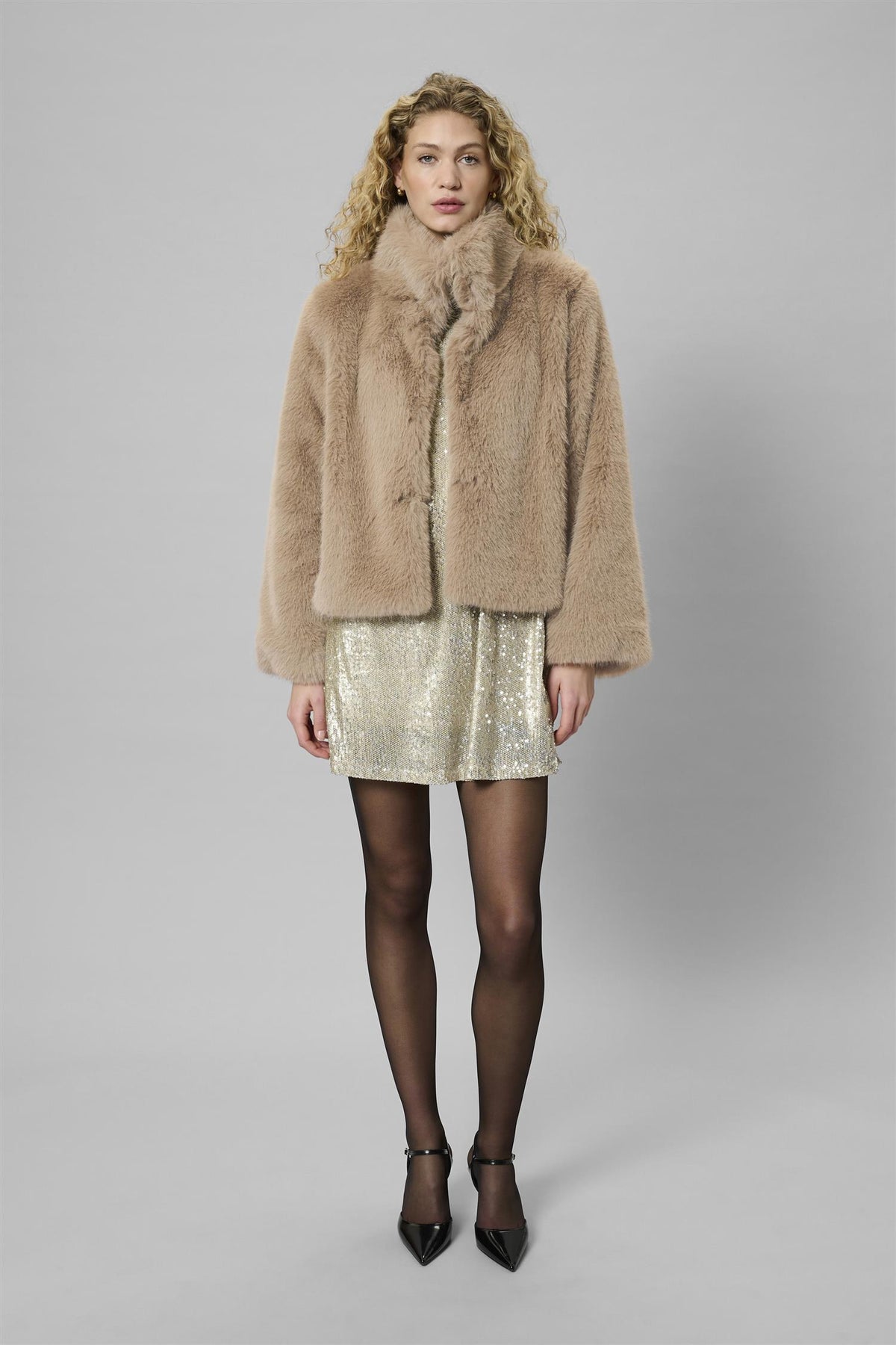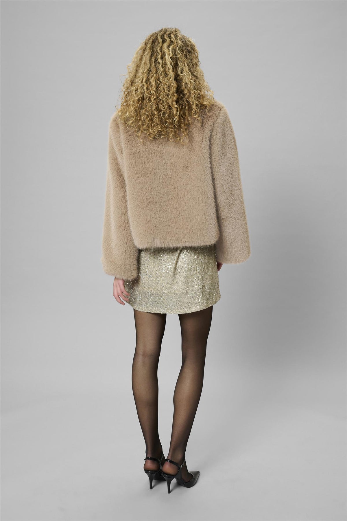 MWAlexa Fur Jacket er en stilren og komfortabel jakke laget av 100% polyester. Denne jakken har en løs passform og en kort lengde, noe som gir den et moderne og trendy utseende. Fargen greige, en kombinasjon av grå og beige, gjør den enkel å style med ulike antrekk.