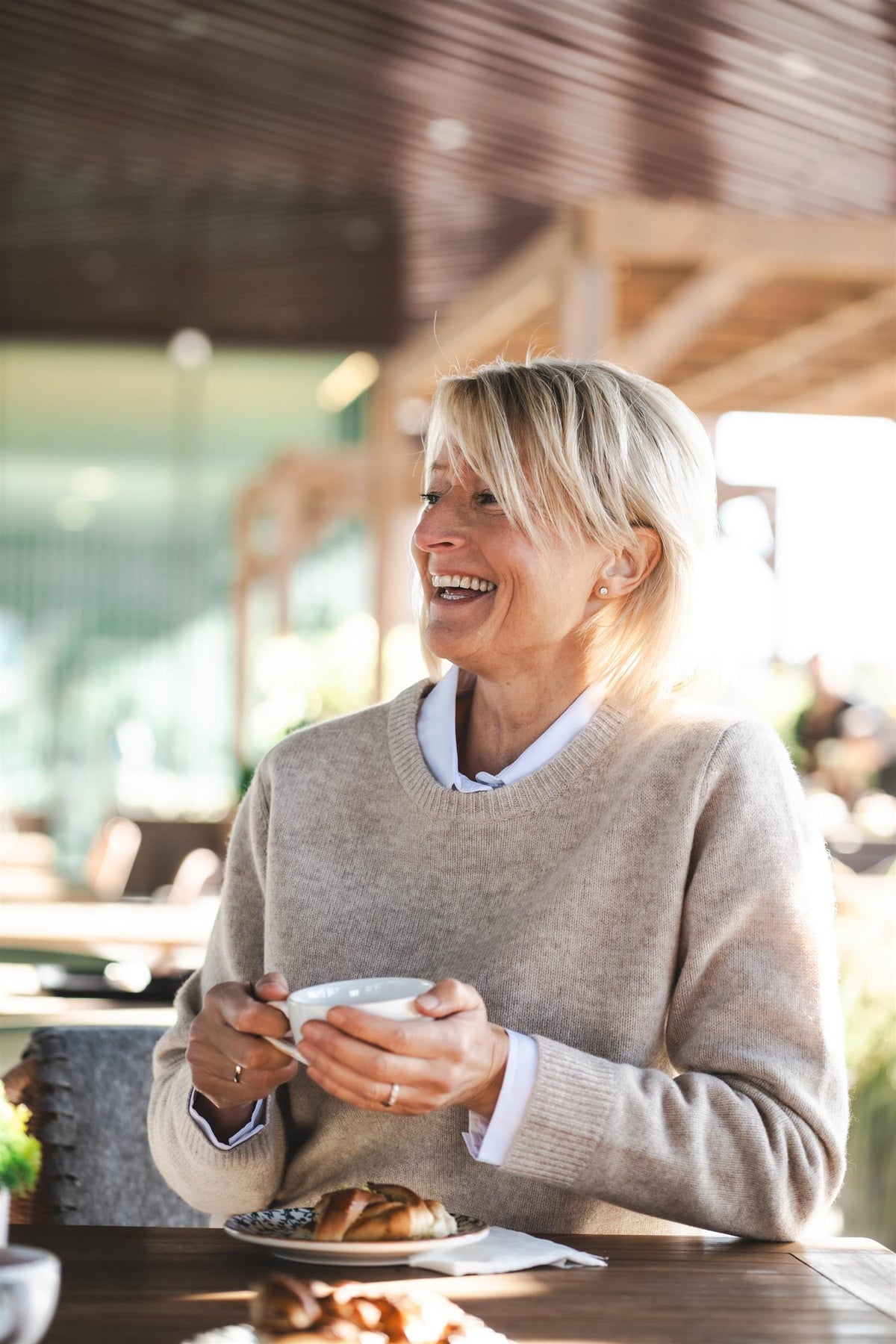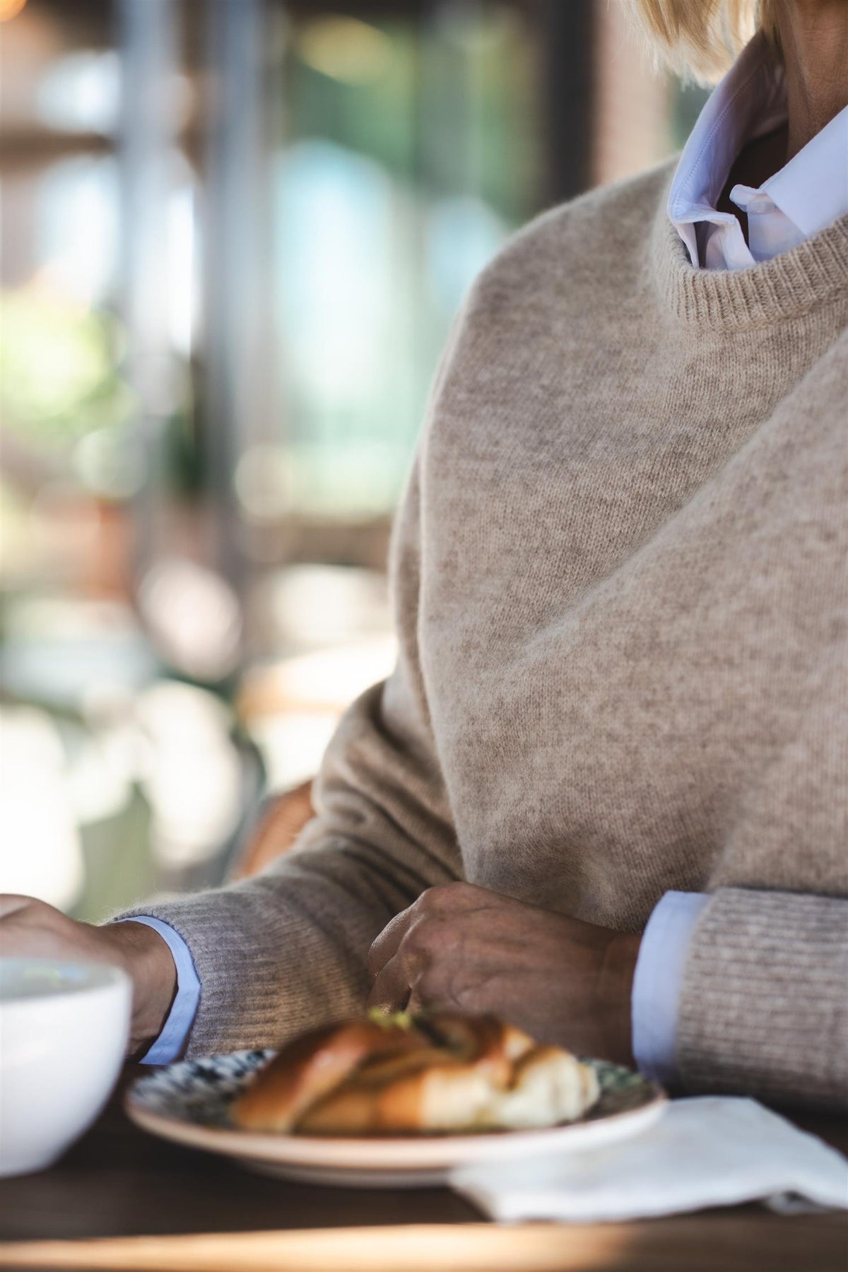 Basic strikk fra Freequent i ren ull. Superfin beige melert farge.