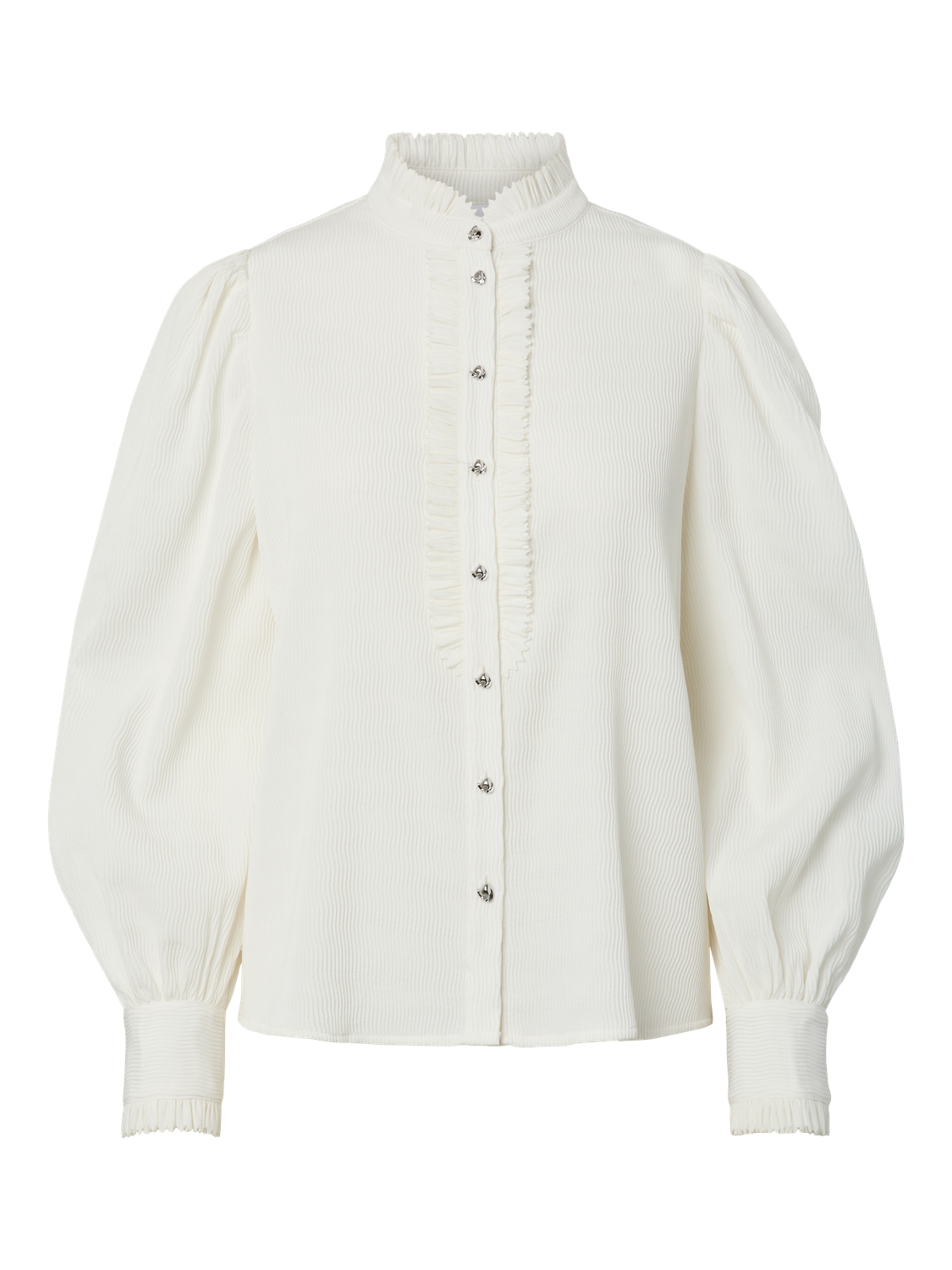 YASRIGO LS SKJORTA er en elegant og stilren skjorte i en lys, off-white farge, perfekt for både hverdagsbruk og mer formelle anledninger. Den er laget med en behagelig blanding av materialer som gir både komfort og bevegelsesfrihet.