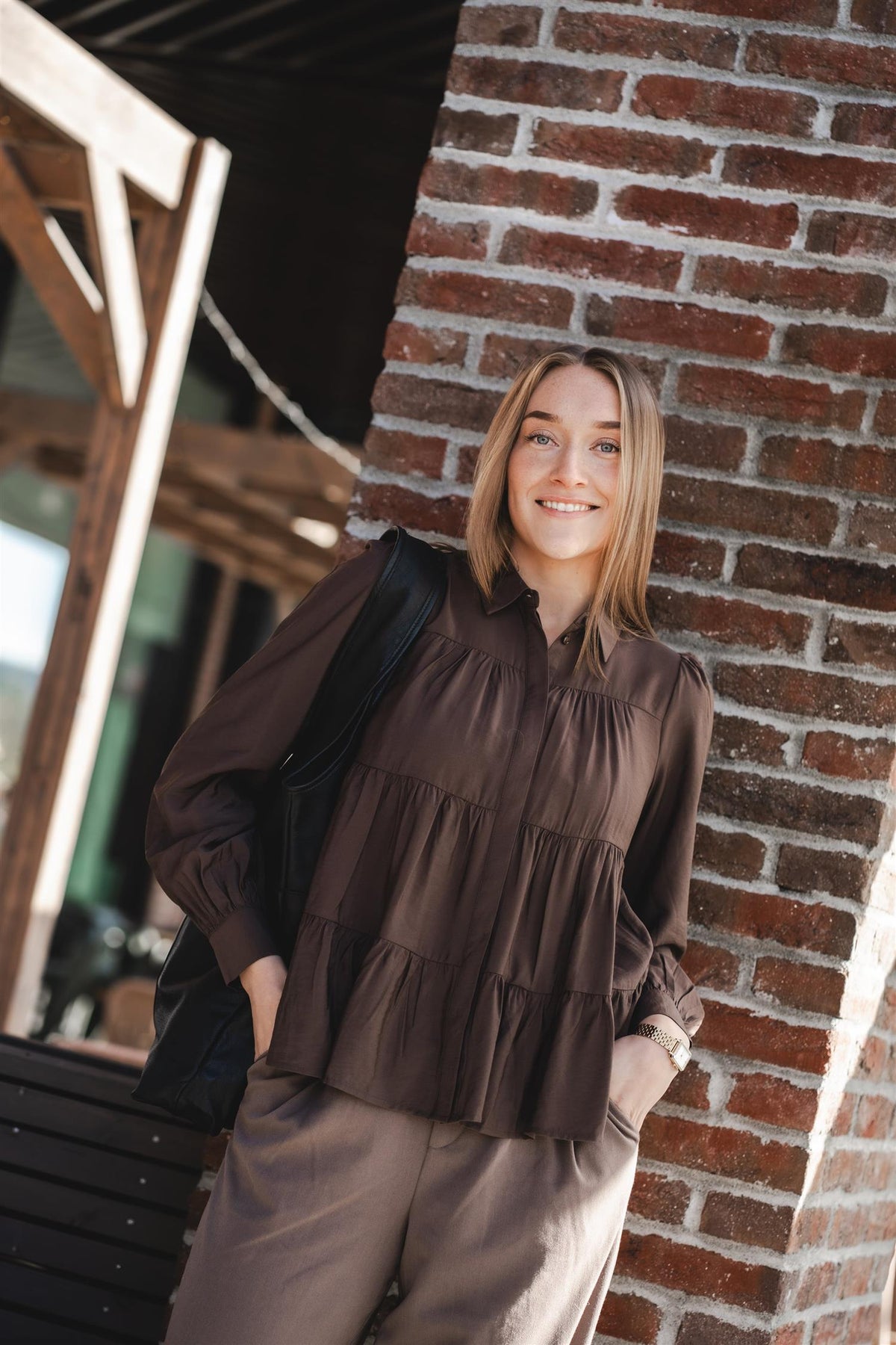 Farge: Mellombrun - En tidløs og allsidig farge som enkelt kan styles med ulike antrekk.