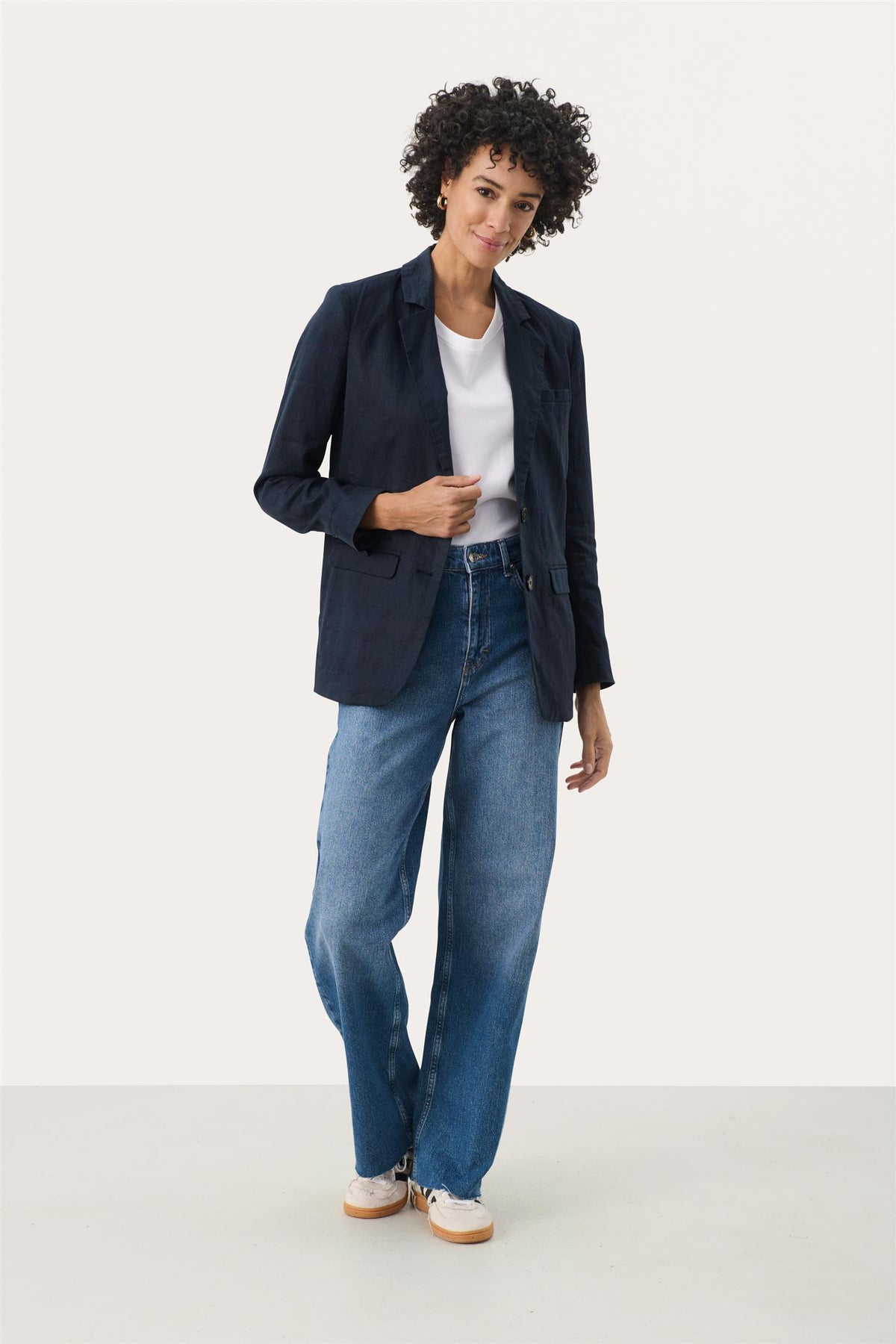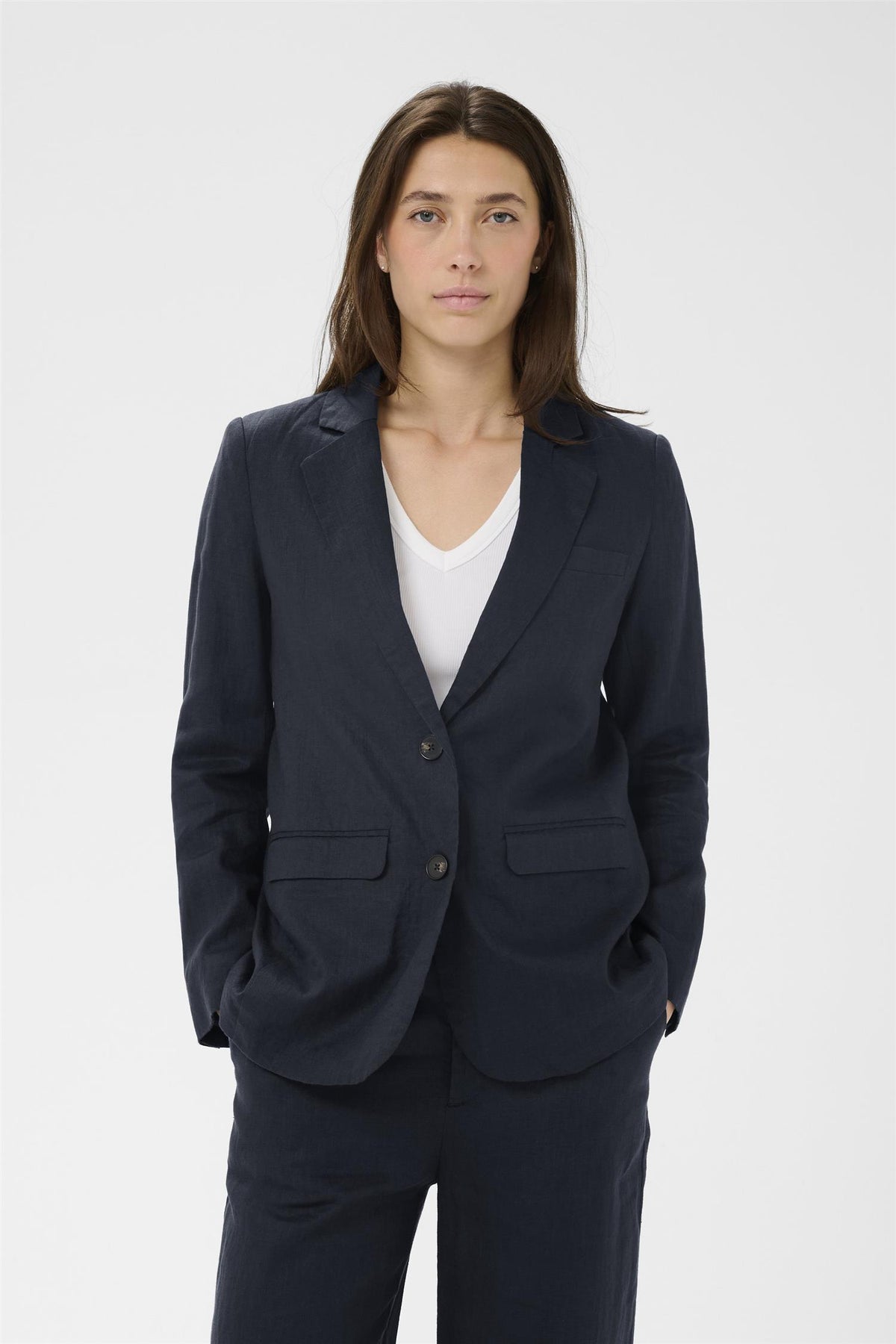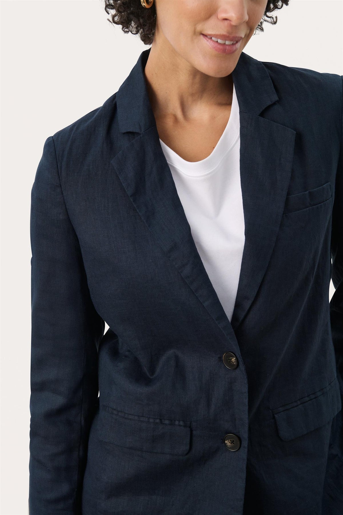 Opplev den tidløse elegansen av NyanPW BZ jakken i fargen "After Midnight". Laget av 100% lin, gir denne jakken både stil og komfort, perfekt for enhver anledning.