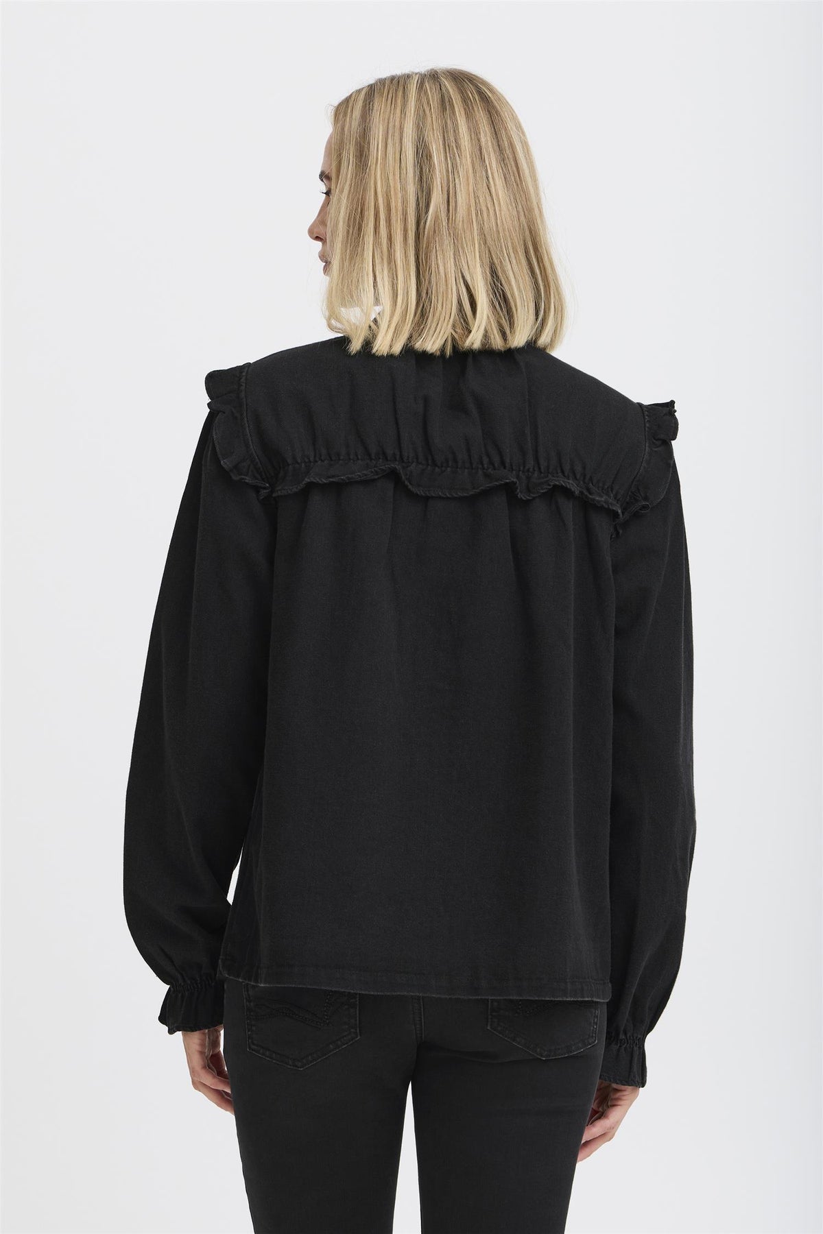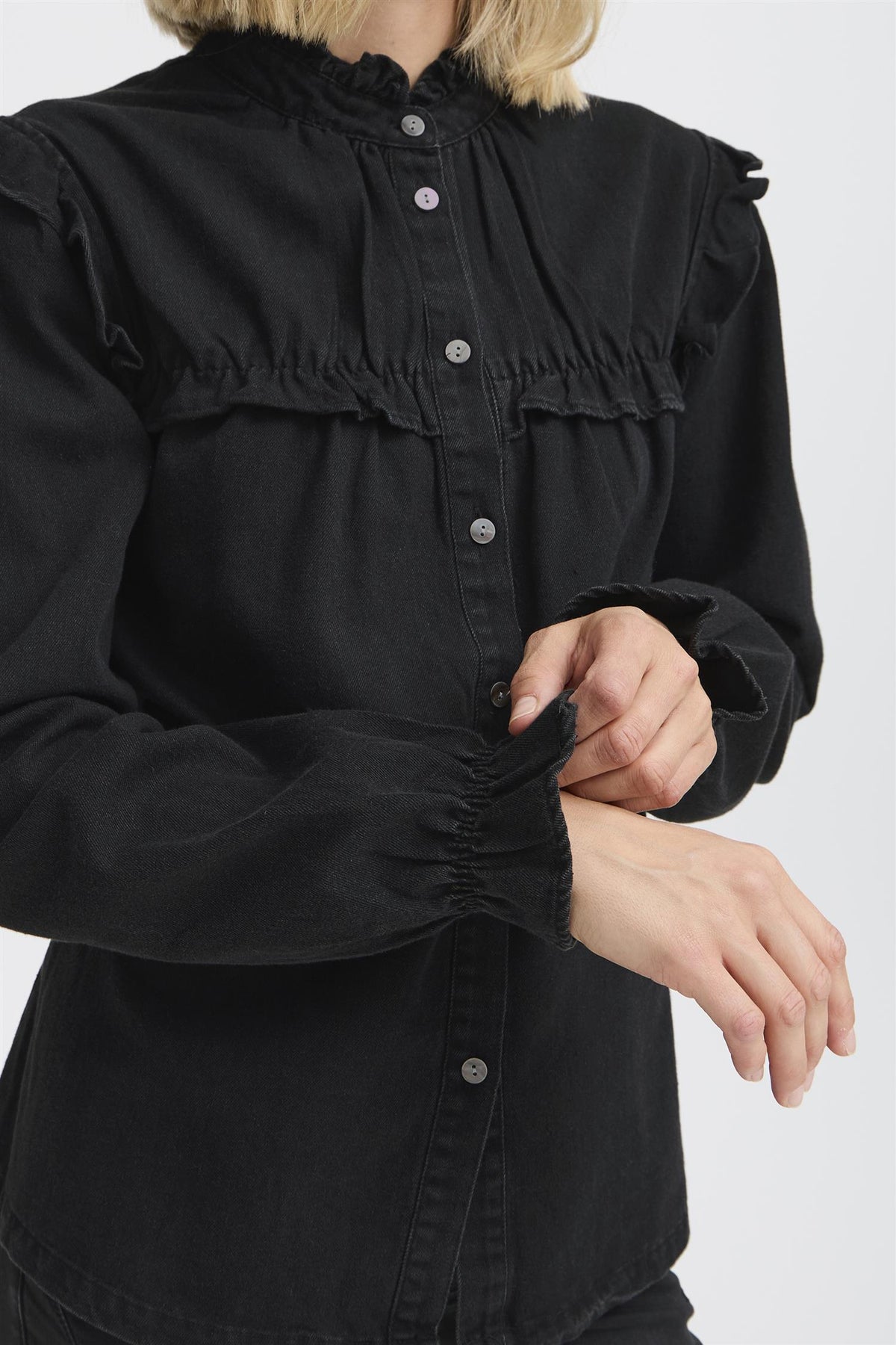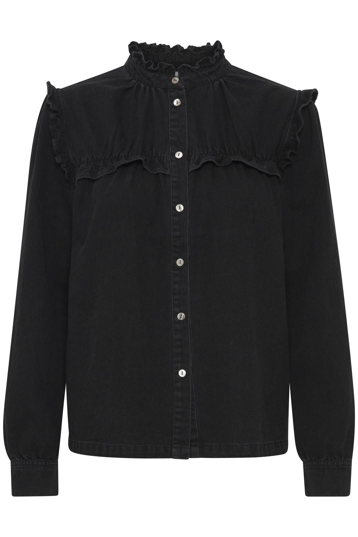 PZMALIA Flounce Shirt i Black Denim er en stilren og komfortabel skjorte laget av 100% bomull. Denne skjorten kombinerer en moderne flounce-design med en klassisk svart denimfarge, noe som gjør den til et perfekt valg for både hverdagsbruk og mer formelle anledninger.