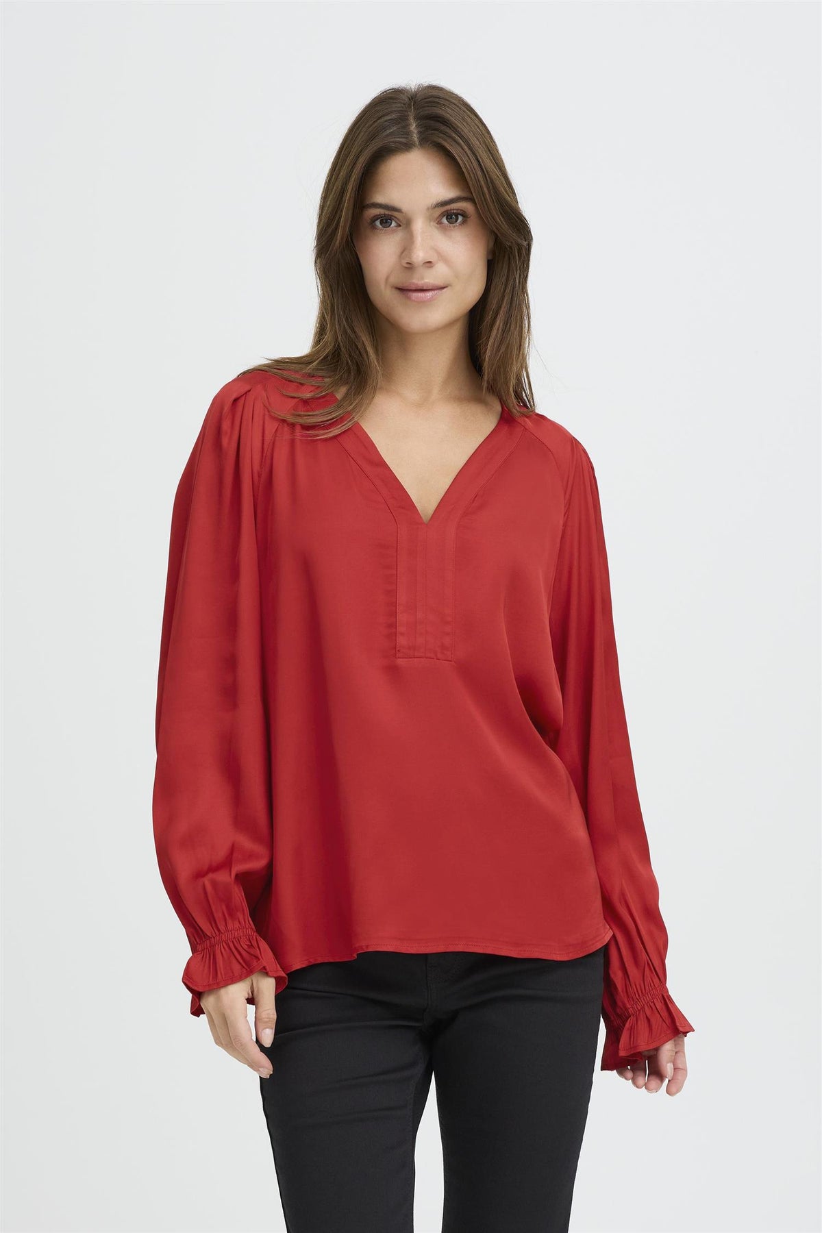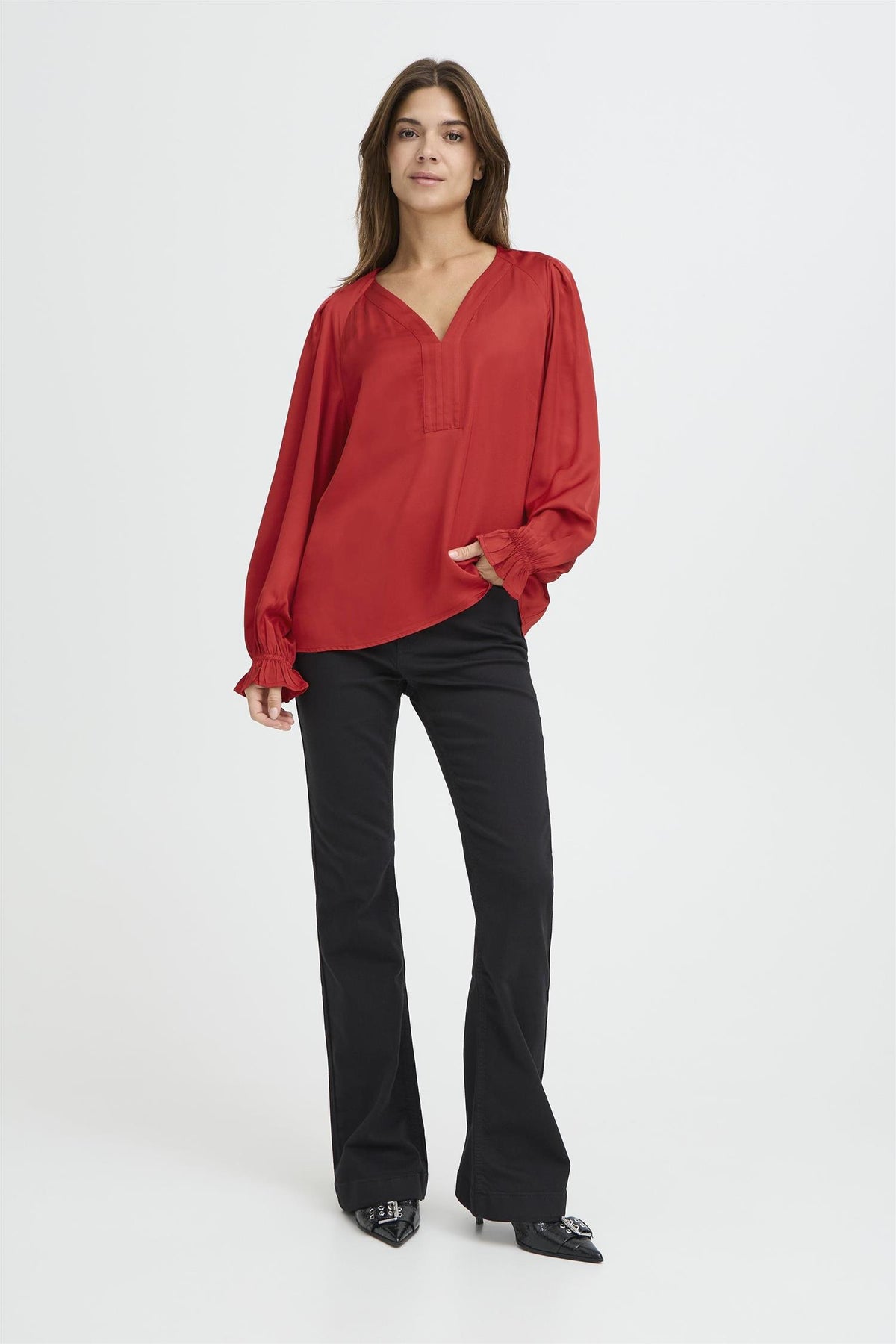 PZCASSY BLOUSE i fargen Chili Pepper er en elegant og feminin bluse laget av 100% viskose. Denne blusen kombinerer stil og komfort, perfekt for enhver anledning.