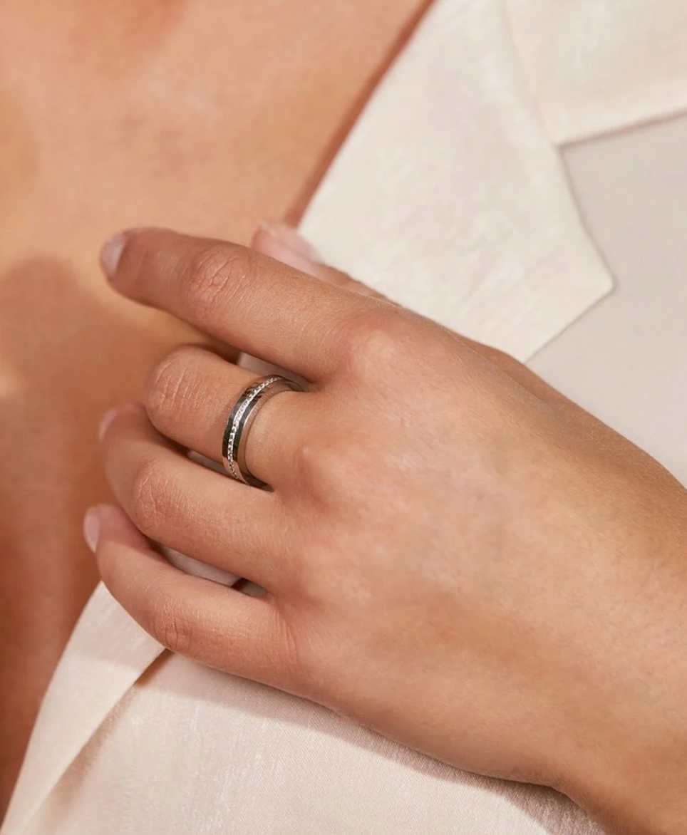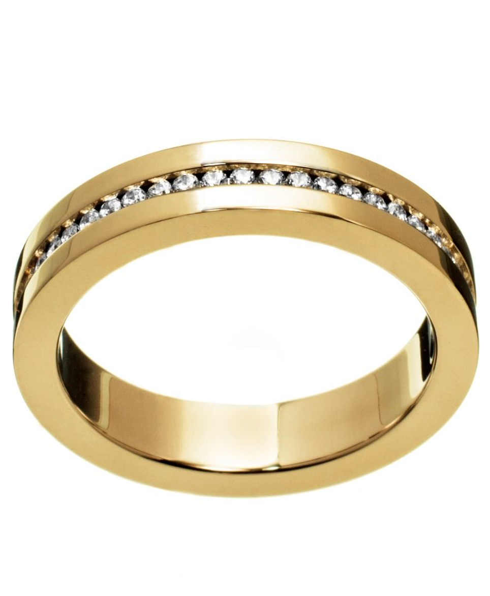Josefin ring er en pen og elegant ring med én enkelt rad med ringer, her innfattet i blankt gull.