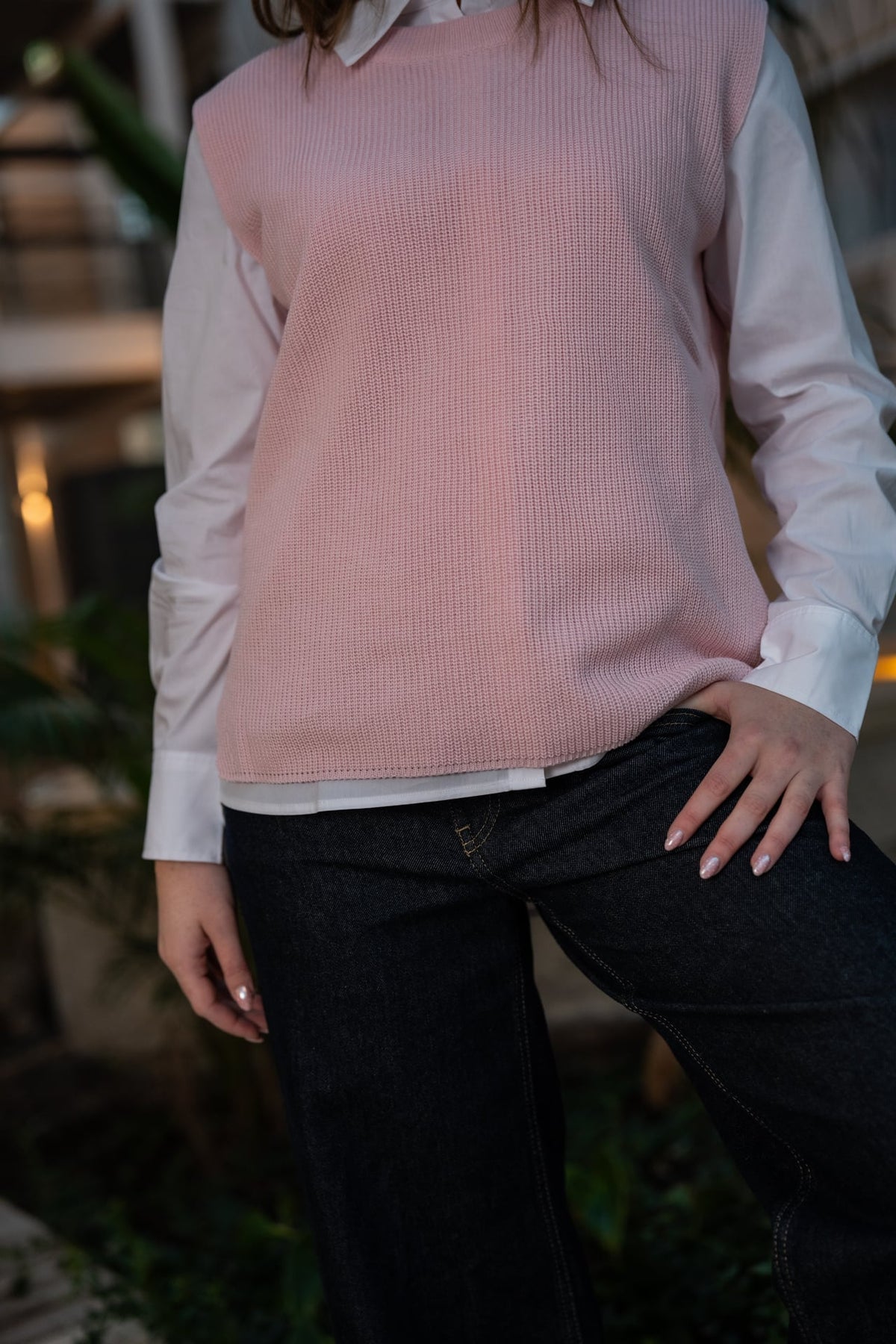 Enkel bomullsvest fra Skovhuus. Vesten har små splitter i sidene som gjør at vesten faller fint over kroppen. Rett fasong.