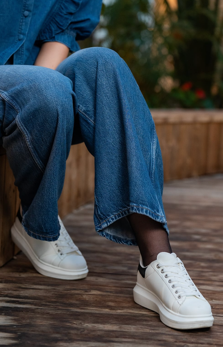 Hvite sneakers med sorte detaljer