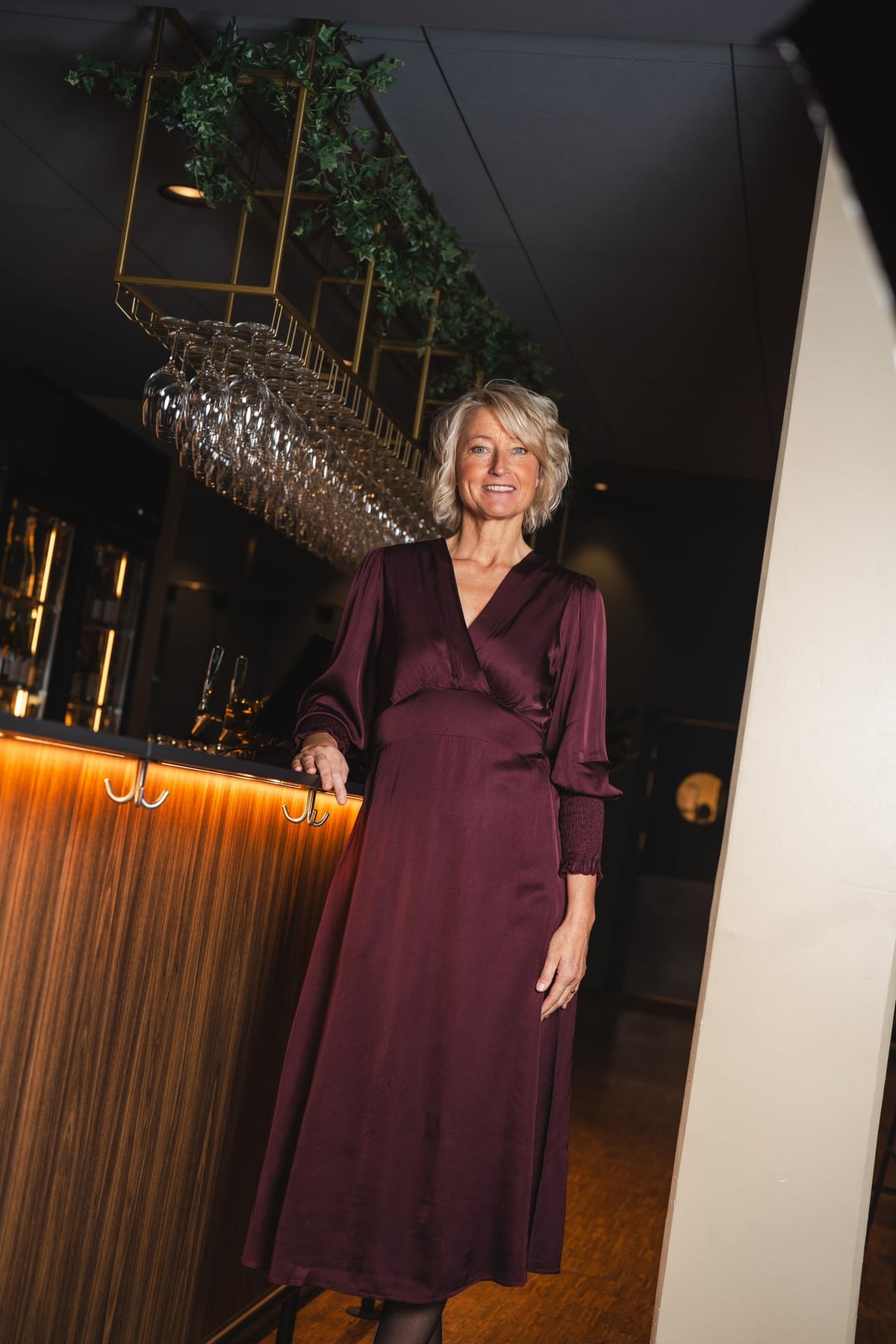 Farge: Cabernet - en rik rød nyanse som tilfører en sofistikert touch til antrekket.