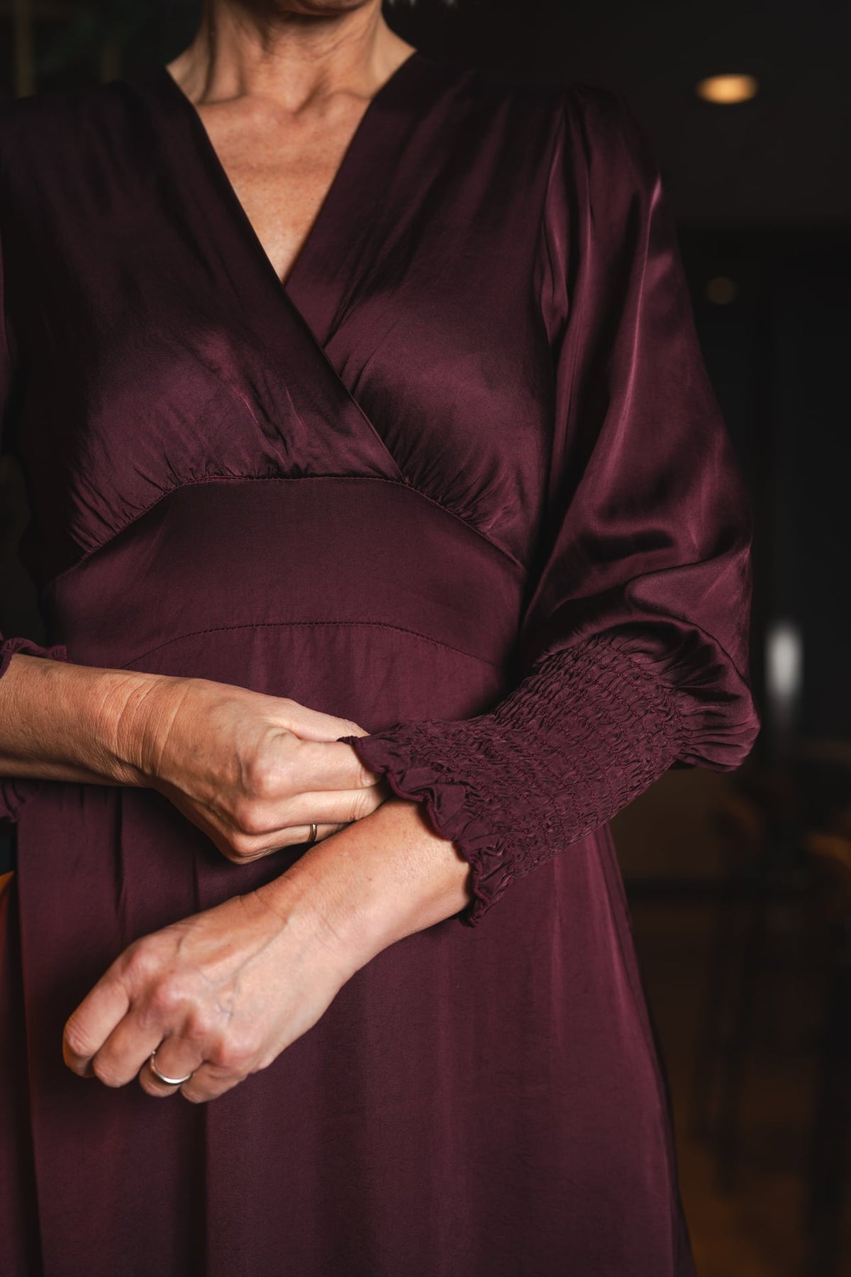 SBOLIVIA SOLID DRESS i en dyp cabernetfarge er et elegant valg for enhver anledning. Denne kjolen er laget av 100% viskose, som gir en myk og behagelig følelse mot huden.