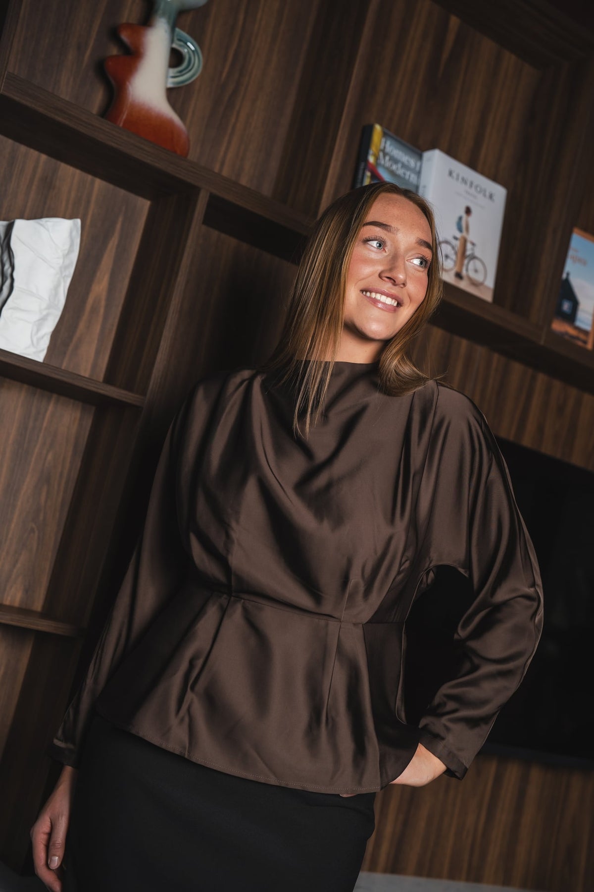 YASYERA LS TOP er en elegant og stilren bluse i en dyp sjokoladebrun farge. Den er laget av en myk og behagelig blanding av polyester og viskose, noe som gir en luksuriøs følelse mot huden. Med lange ermer og en lukket halslinning, er denne toppen perfekt for en sofistikert hverdagslook.