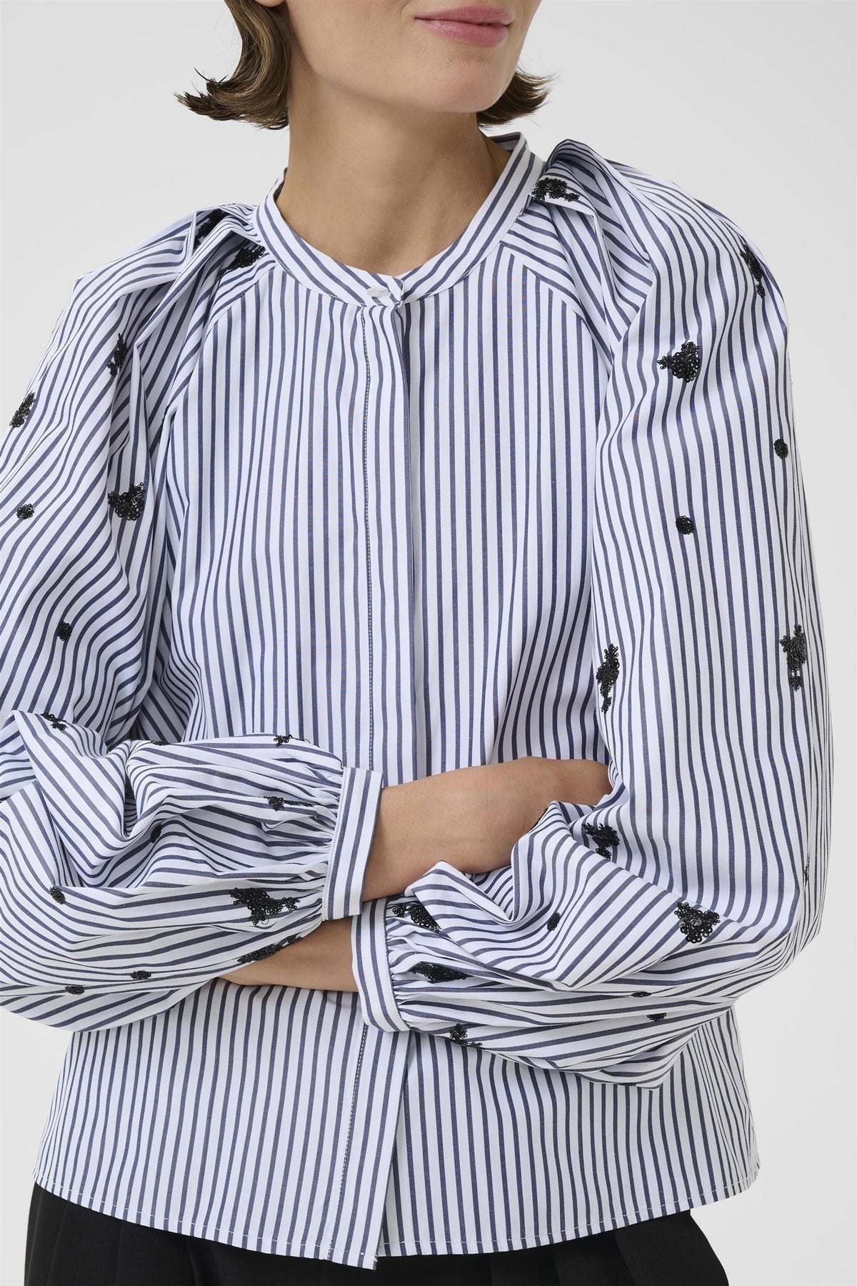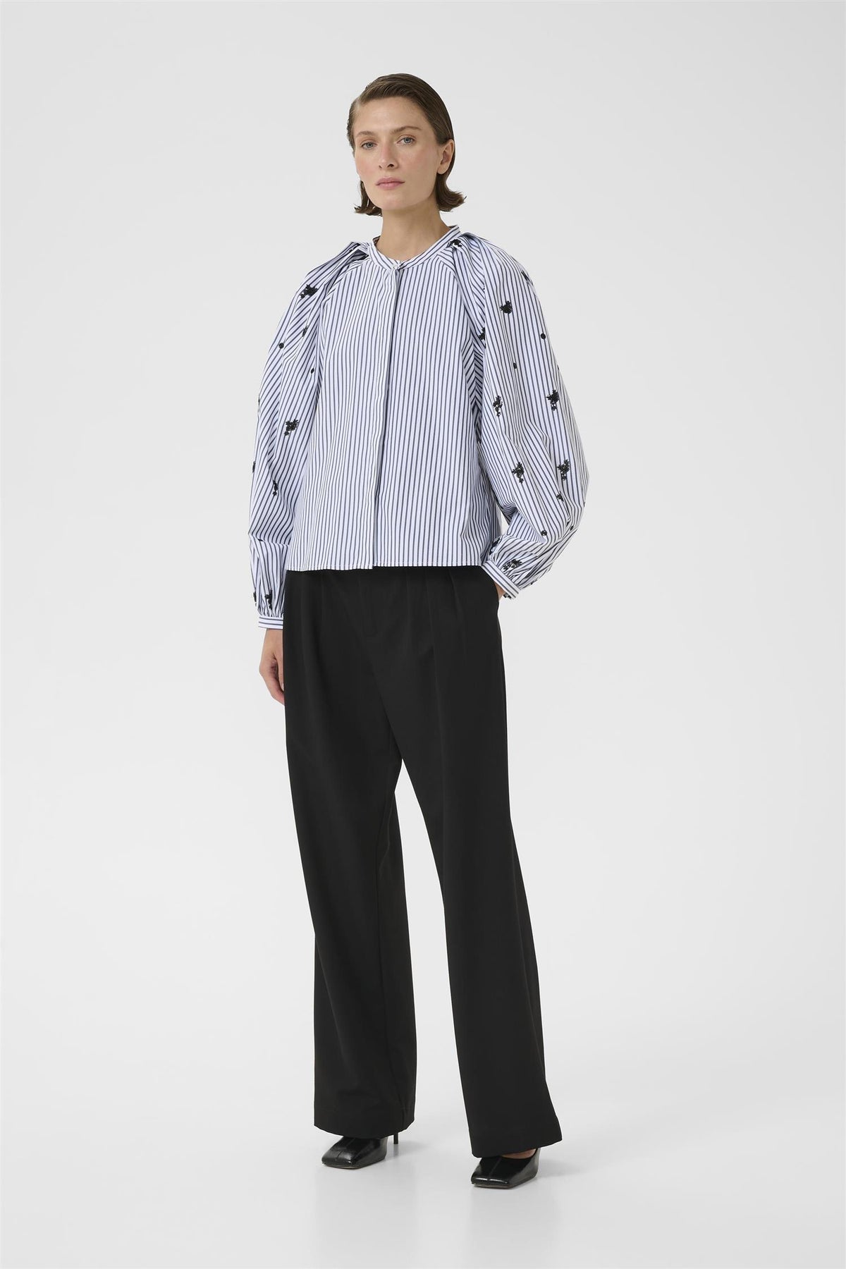 KBEgoni Blouse i Ombre Blue stripe kombinerer stil og komfort på en elegant måte. Denne feminine blusen er perfekt for hverdagsbruk og gir et friskt preg til garderoben din.