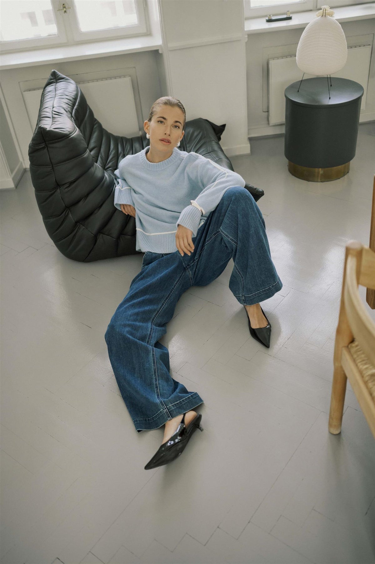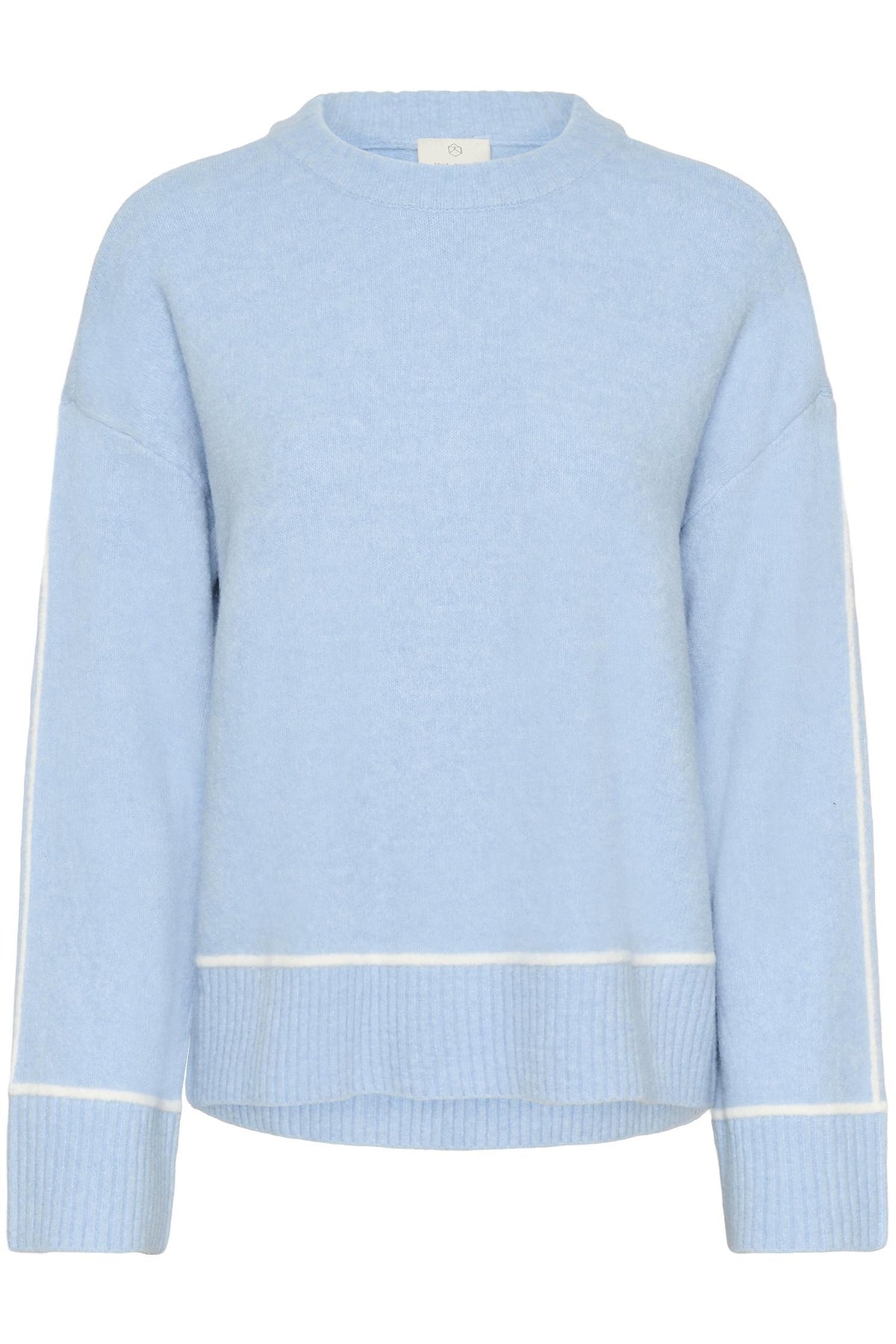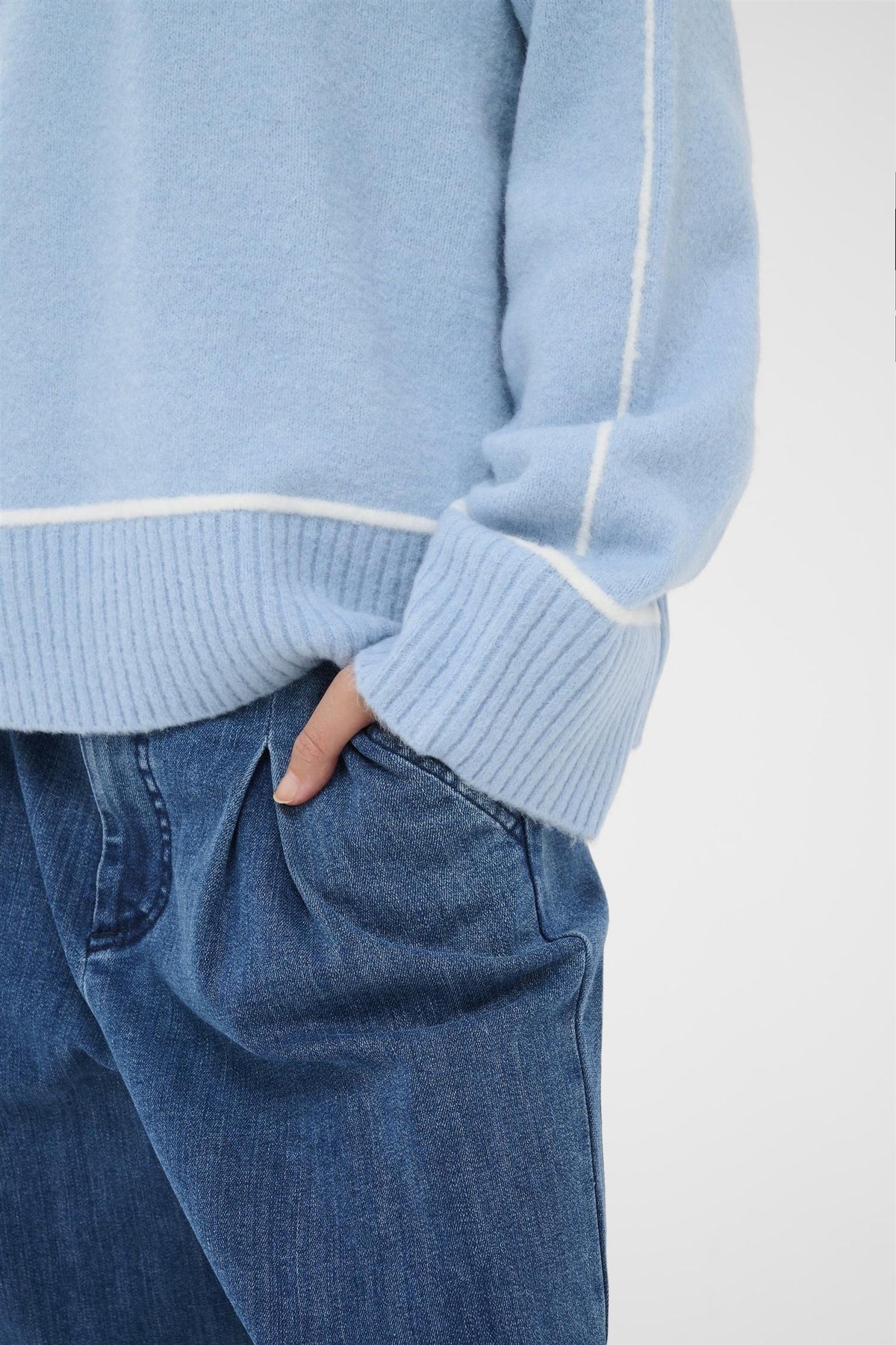 KAjinie Knit Pullover i Powder Blue Melange er en stilren og komfortabel genser laget for å gi deg både varme og stil. Den løse passformen gjør den perfekt for avslappede dager, samtidig som den gir et moderne preg til antrekket ditt.