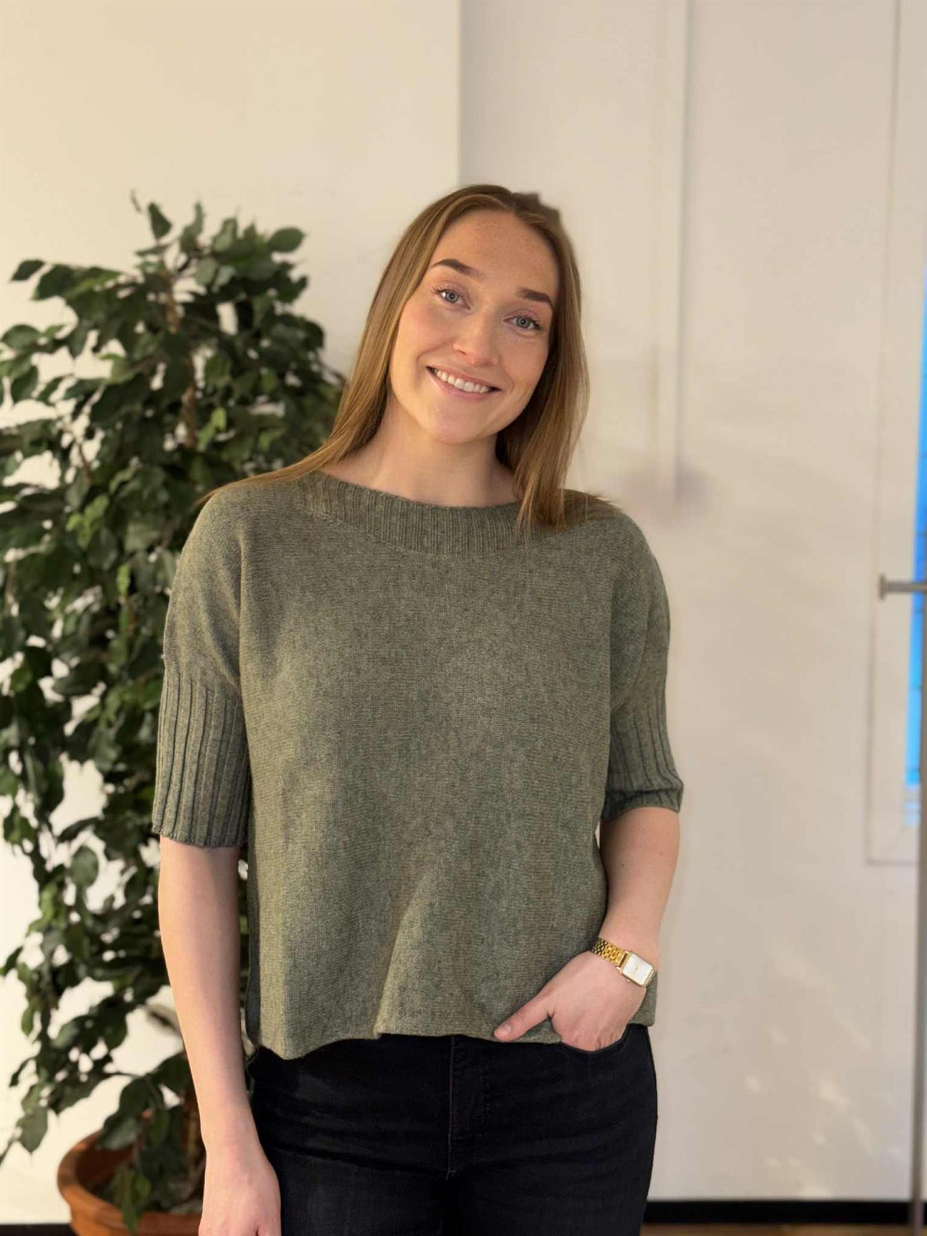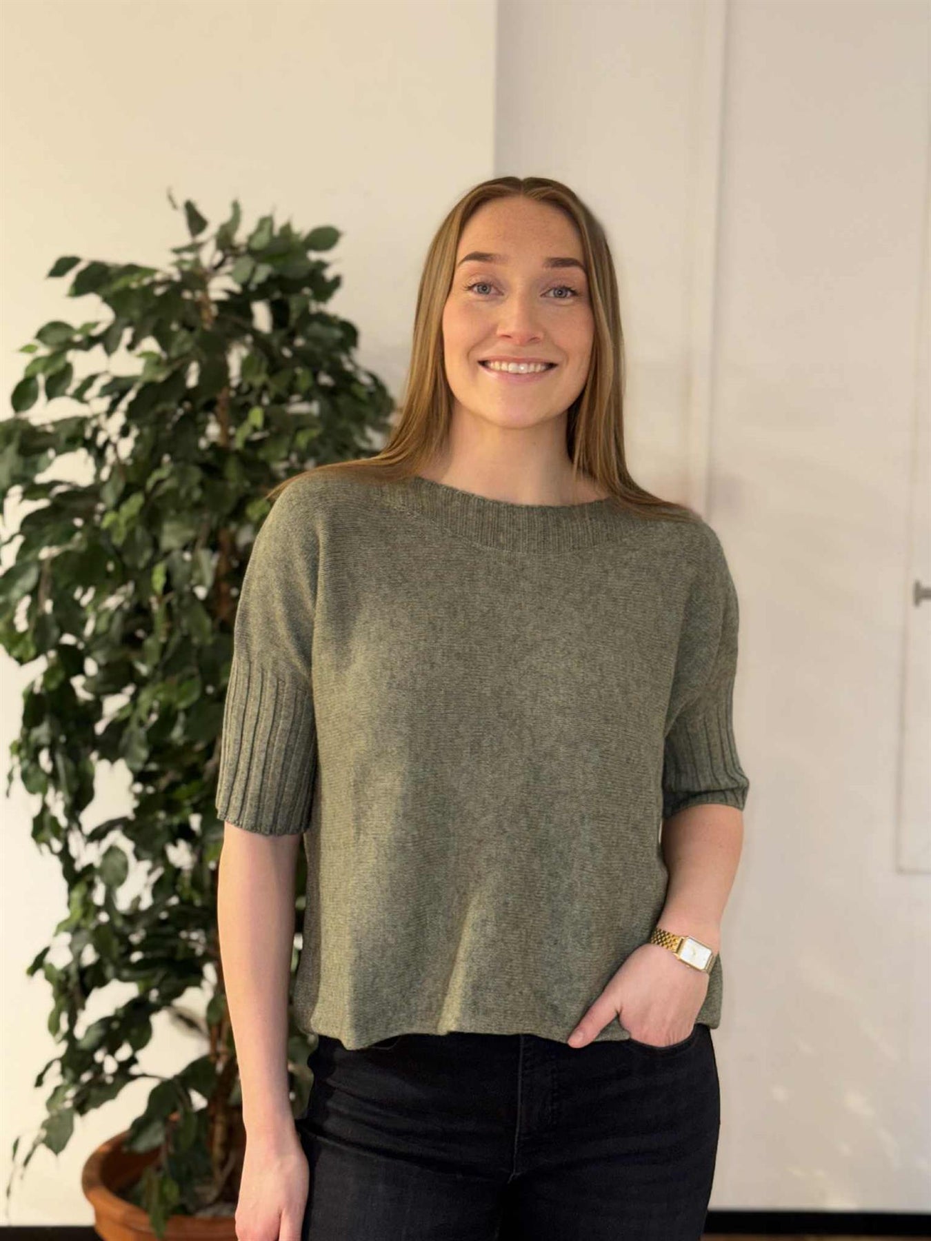 Superfin genser i myk viskosekvalitet. Rett og kort modell med ribermer.
