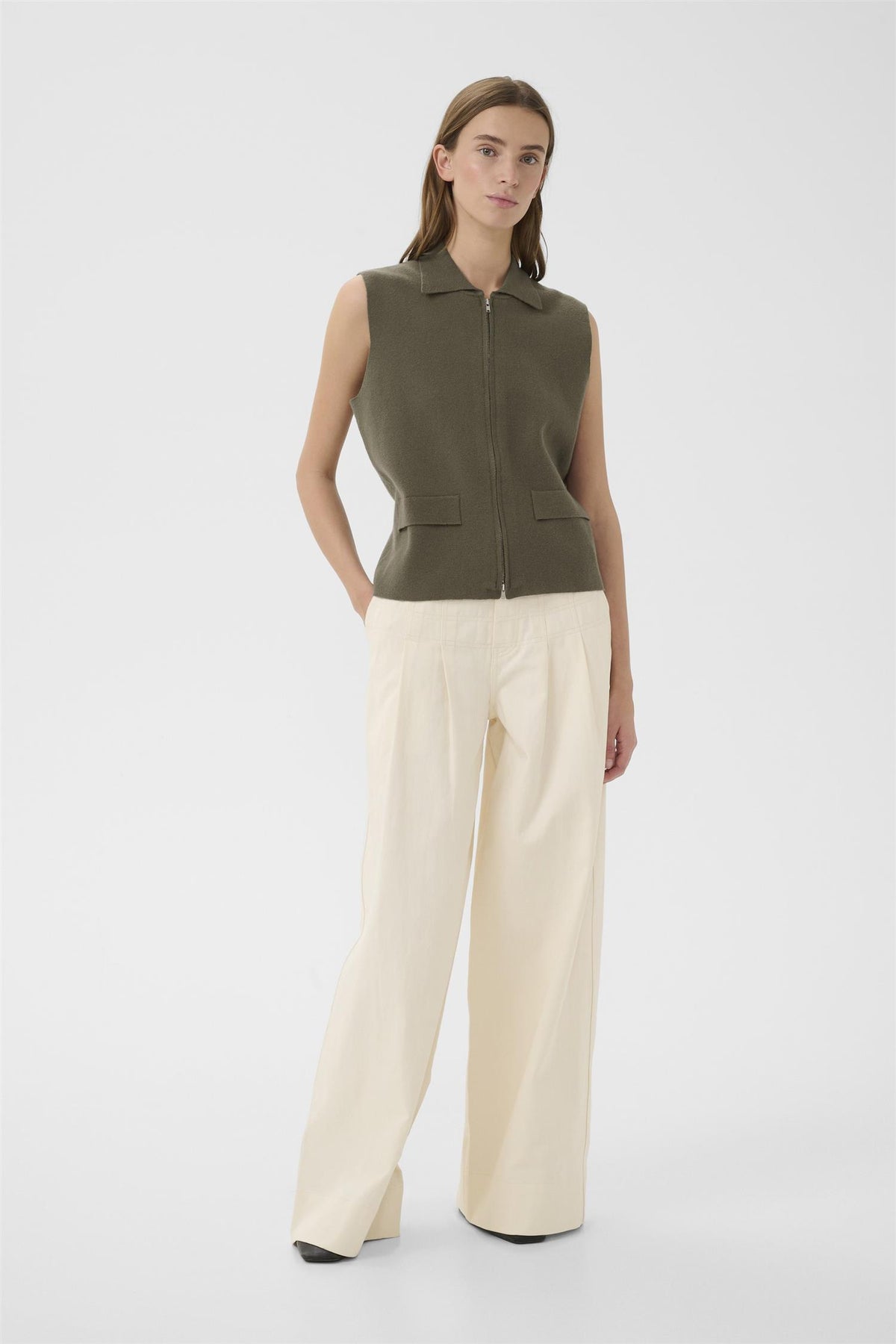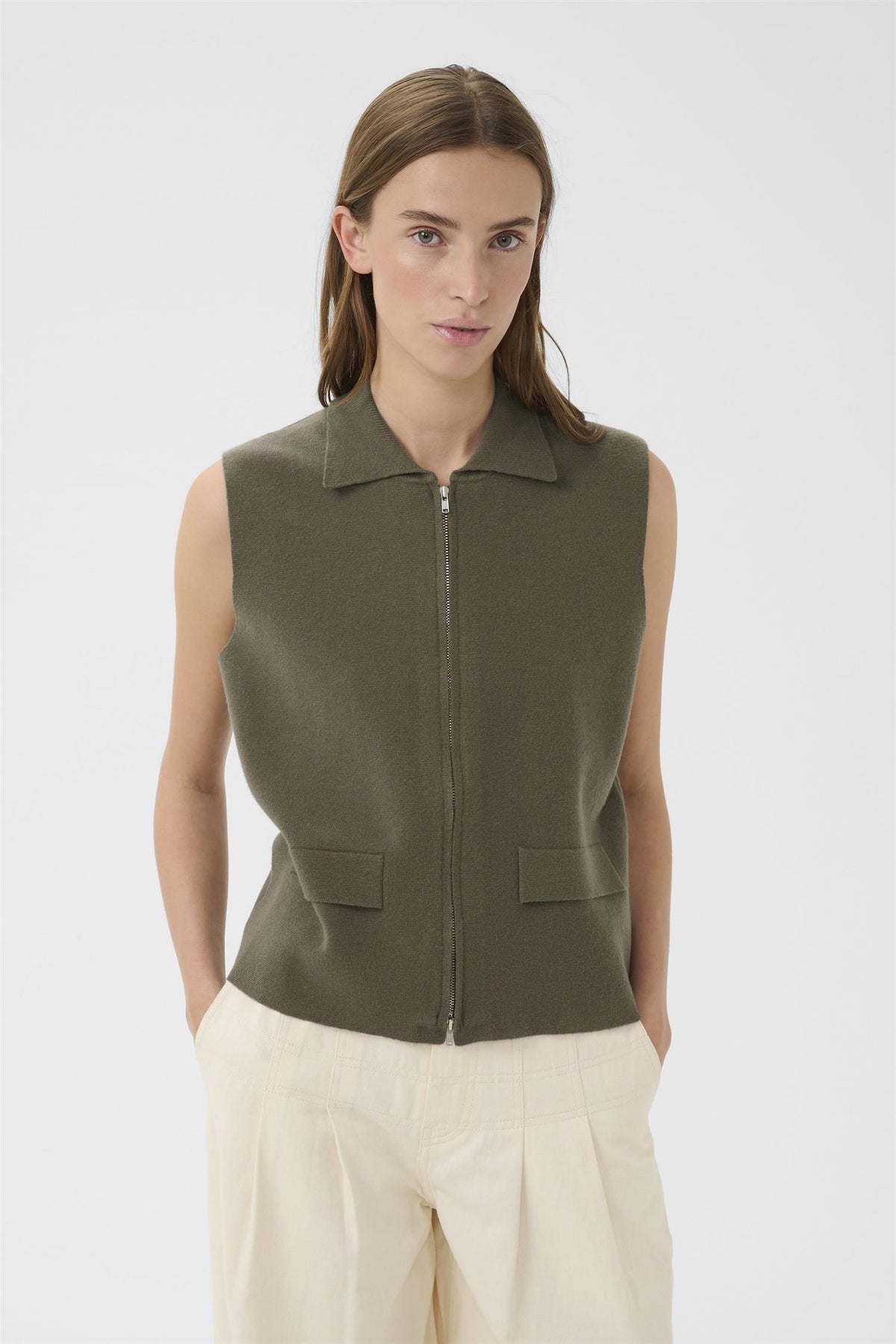 KBElvina Waistcoat i dyp lichen grønn er en stilren og klassisk vest som tilfører et elegant preg til enhver garderobe. Laget av en myk og behagelig blanding av materialer, er denne vesten perfekt for spesielle anledninger.