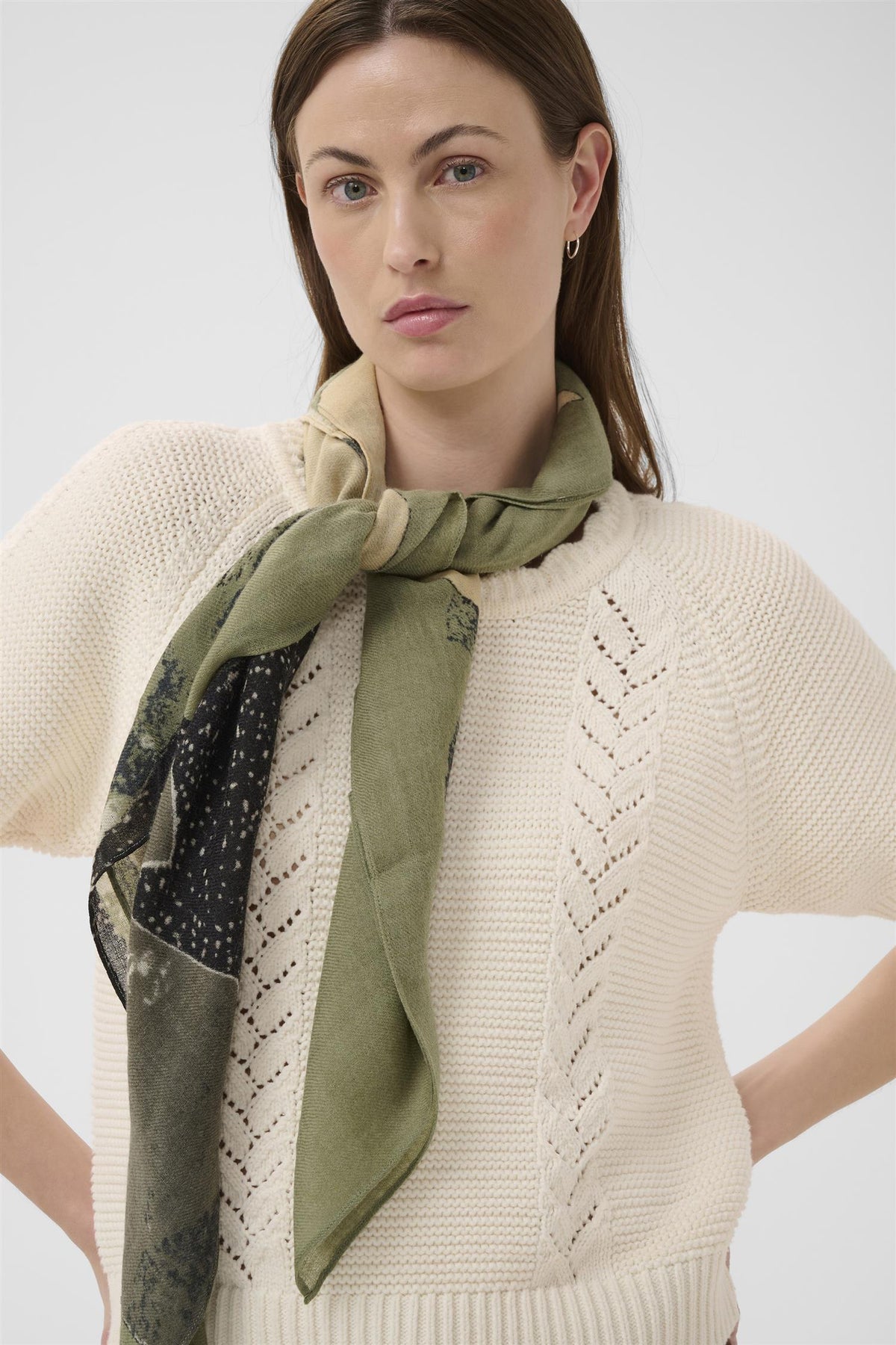 FelisiaPW SC er et stilfullt tilbehør laget av 100% ull, perfekt for å tilføre et elegant preg til antrekket ditt. Den unike Smokey Olive Leaf Print gir et sofistikert uttrykk som passer til ulike anledninger.