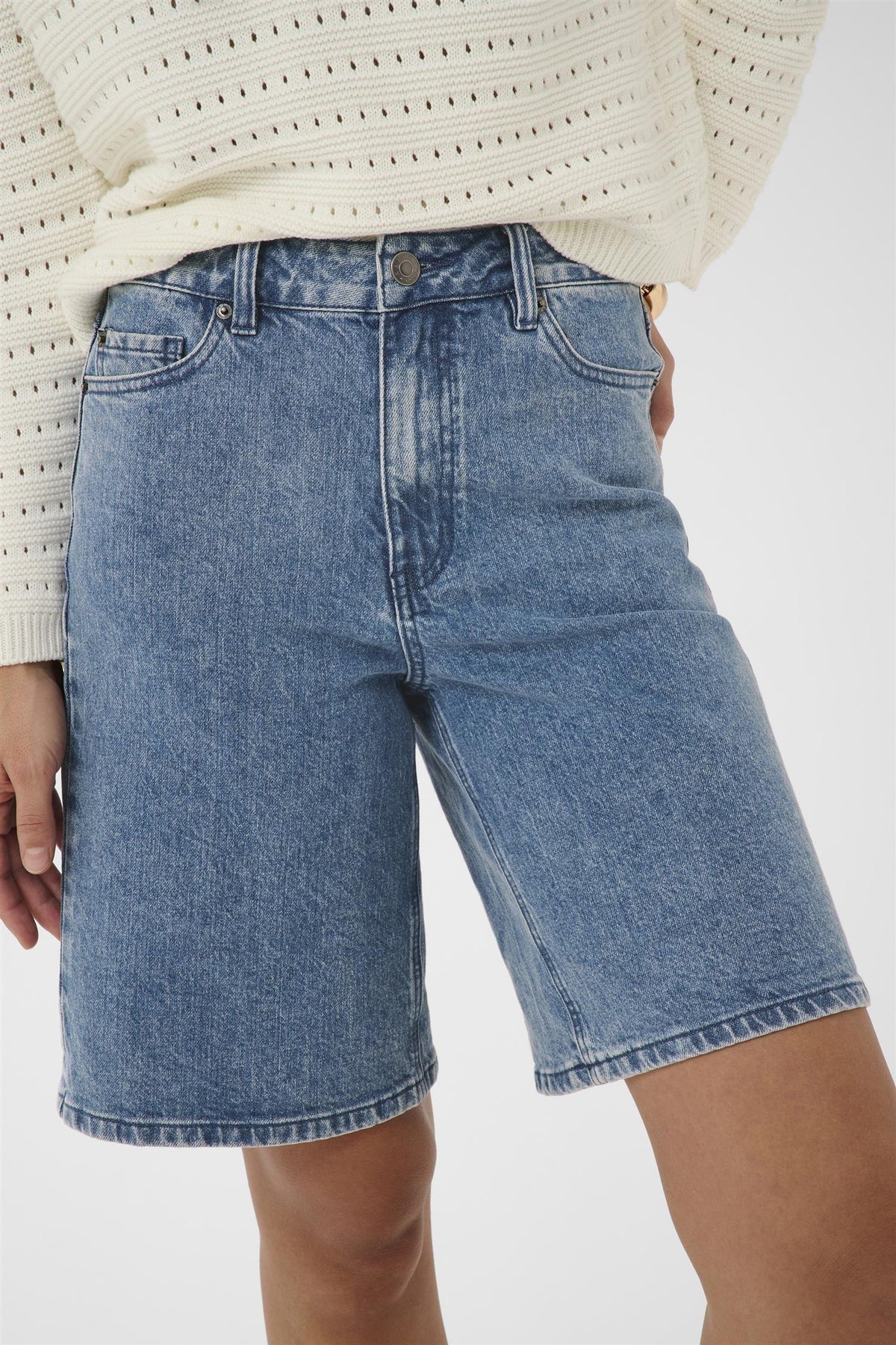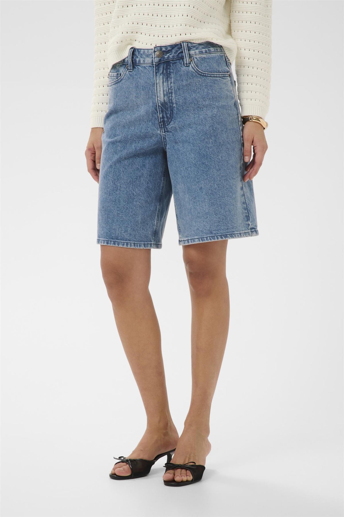 KAvallis Denim Shorts i blåvasket denim er det perfekte valget for en avslappet og stilfull sommerlook. Med en høy midje og knelengde gir disse shortsene en flatterende silhuett som passer til enhver anledning.