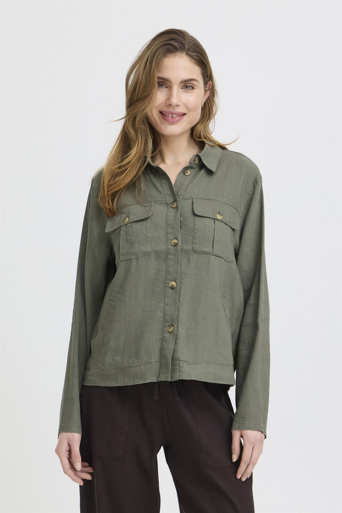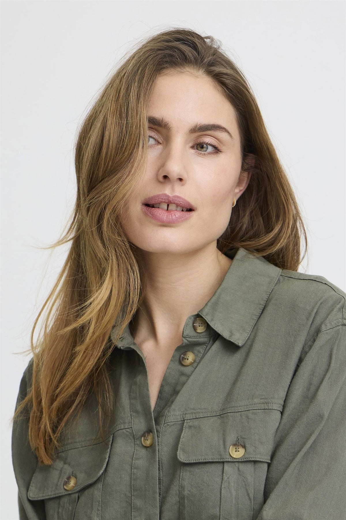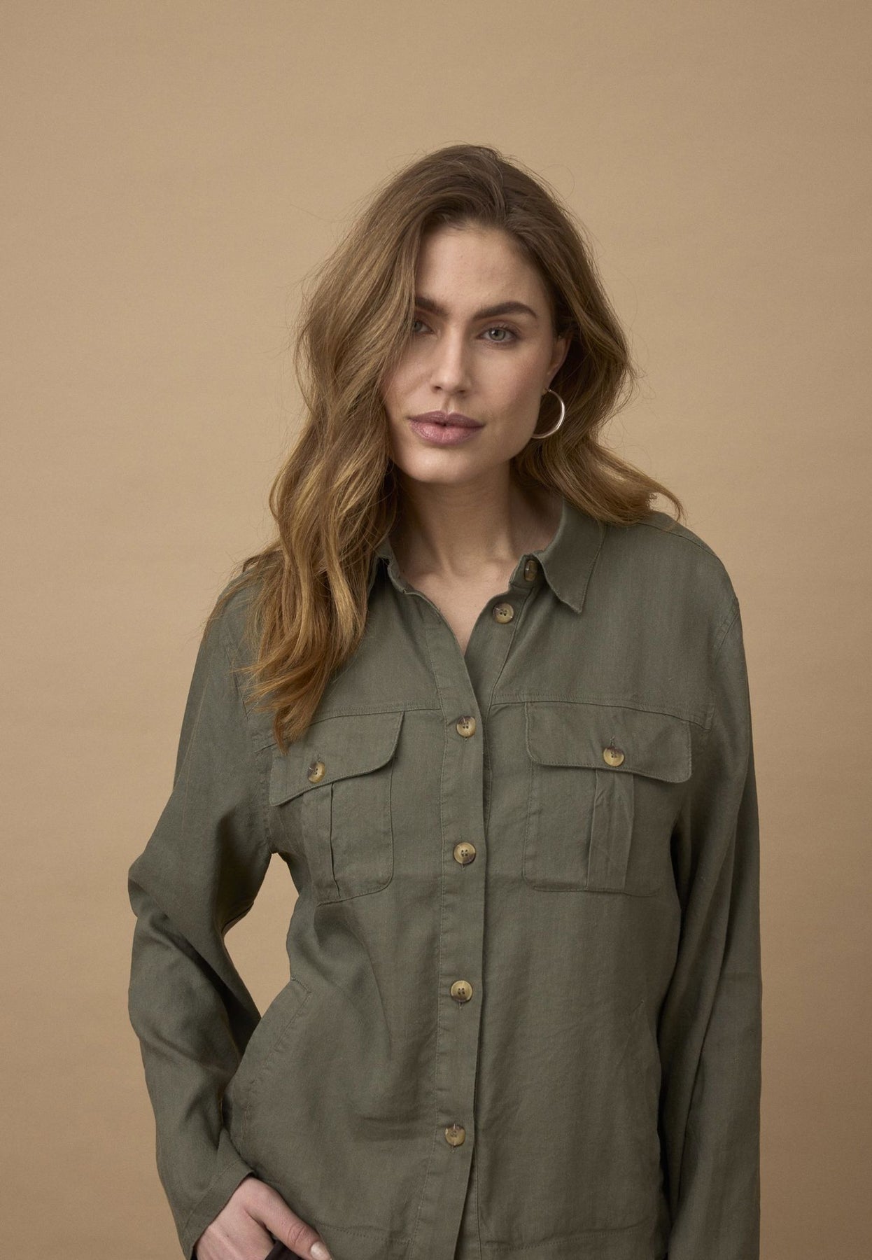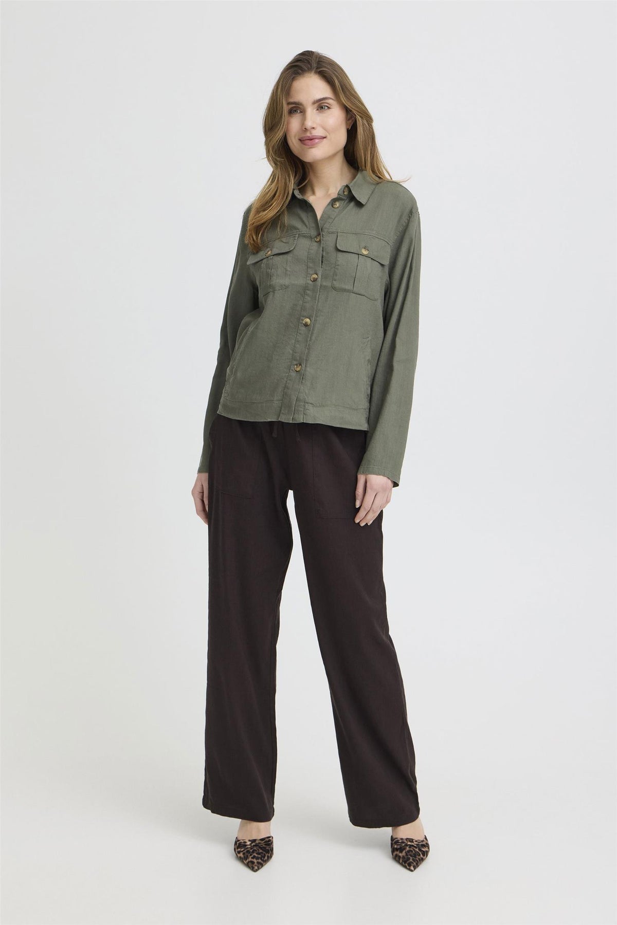 Materiale: 52% lin, 45% viskose, 3% elastan - Lin gir en lett og pustende kvalitet, mens viskose tilfører mykhet og glans. Elastan gir fleksibilitet og bevegelsesfrihet.