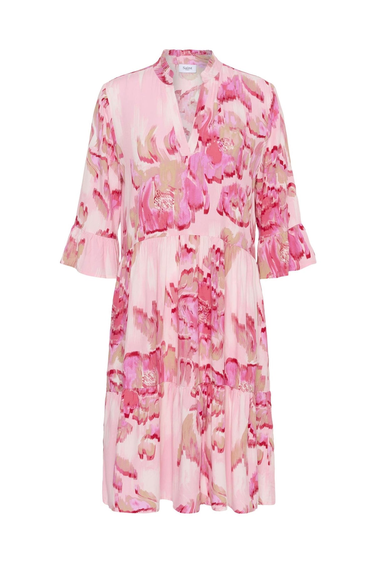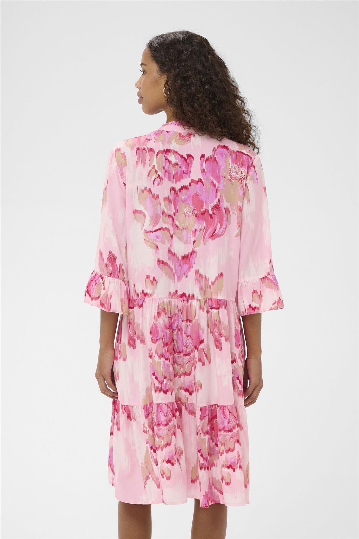 EdaSZ Dress er en elegant kjole laget av 100% Viskose (LENZINGT ECOVEROT), kjent for sin myke og pustende kvalitet. Denne kjolen har en avslappet passform og knelengde, noe som gir en lett og luftig følelse.