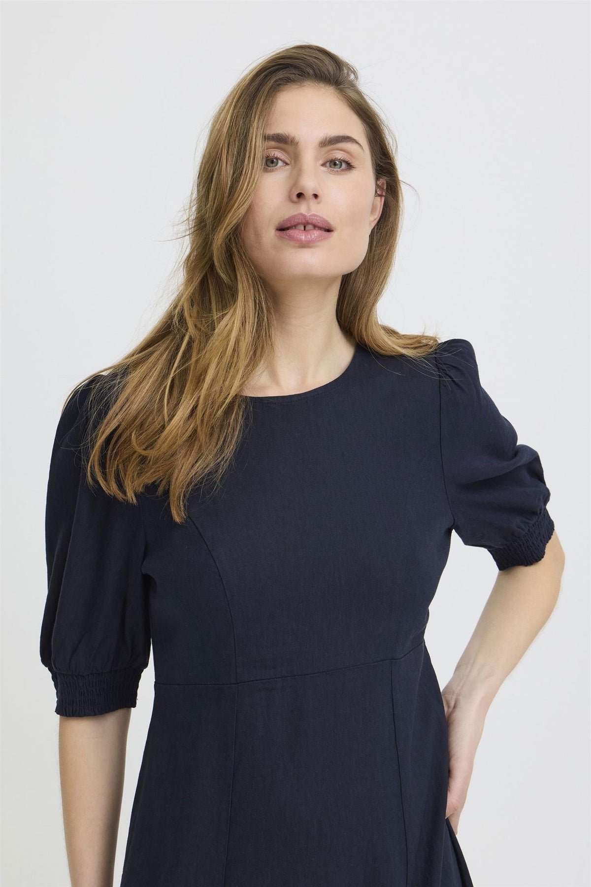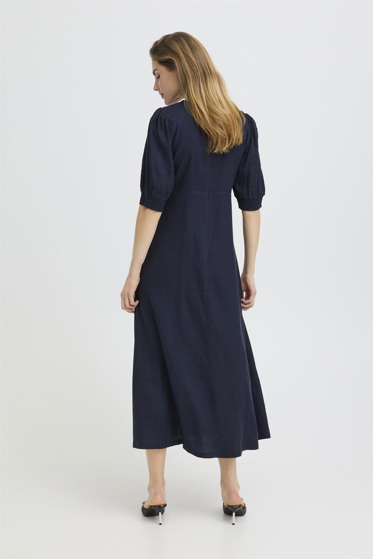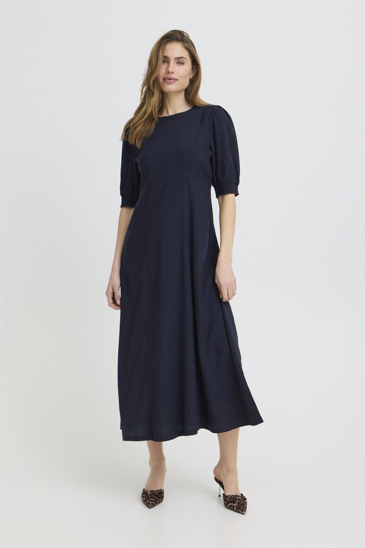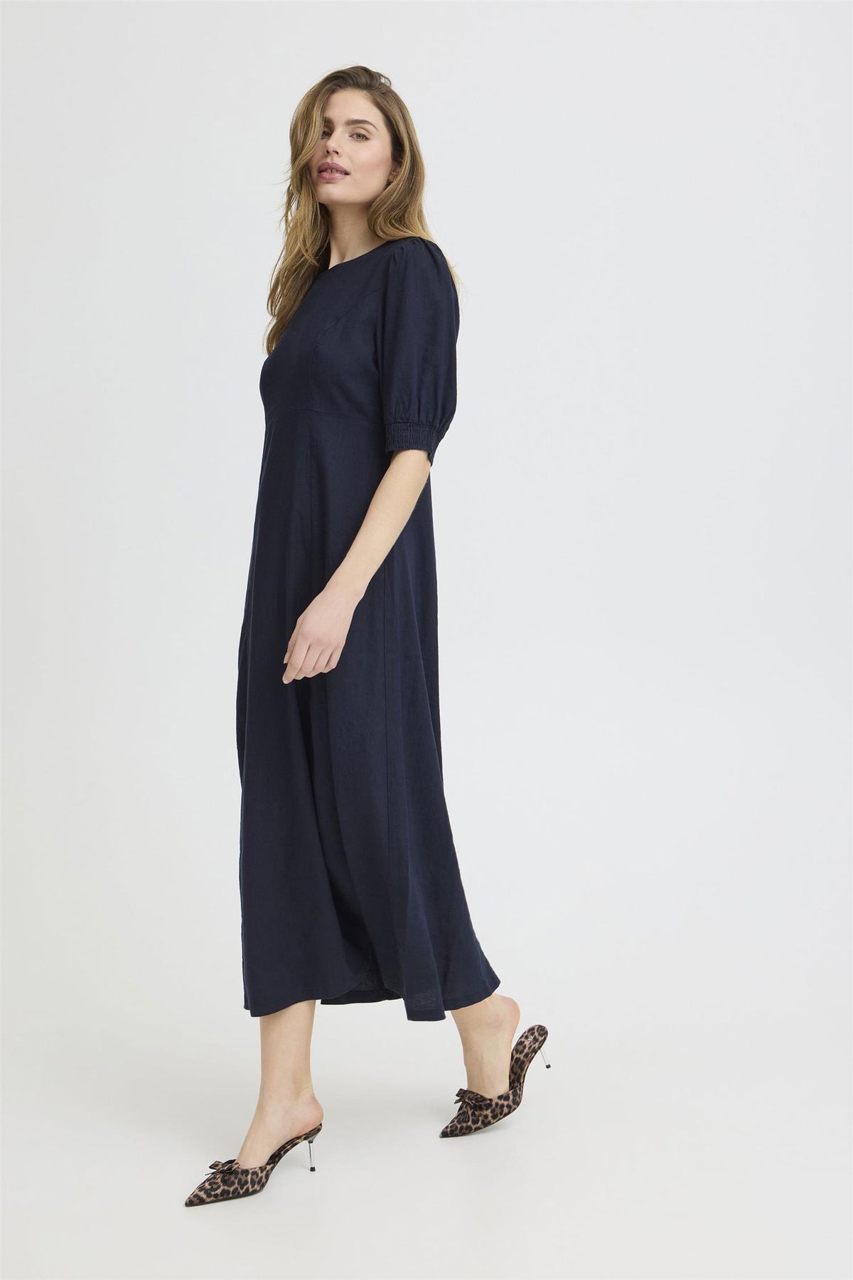 PZLUCA lang kjole i mørk safir er et elegant valg for enhver anledning. Denne kjolen kombinerer komfort og stil med sin feminine passform og midi-lengde, noe som gjør den til et perfekt valg for sommerens varme dager.