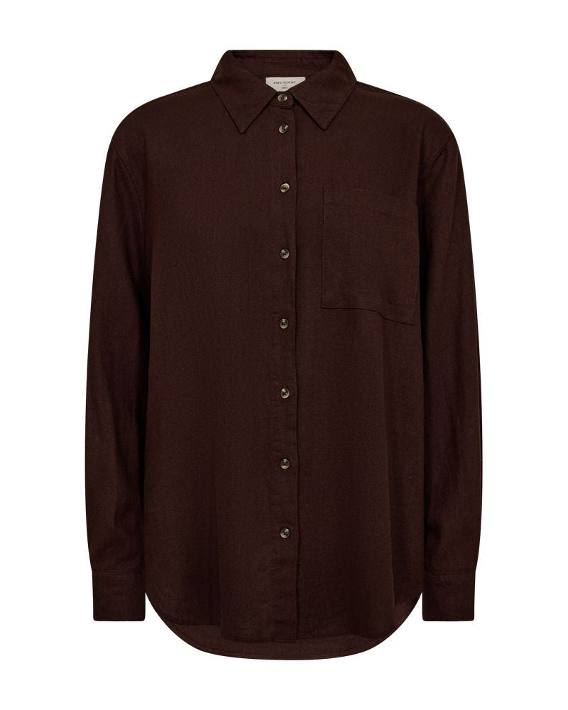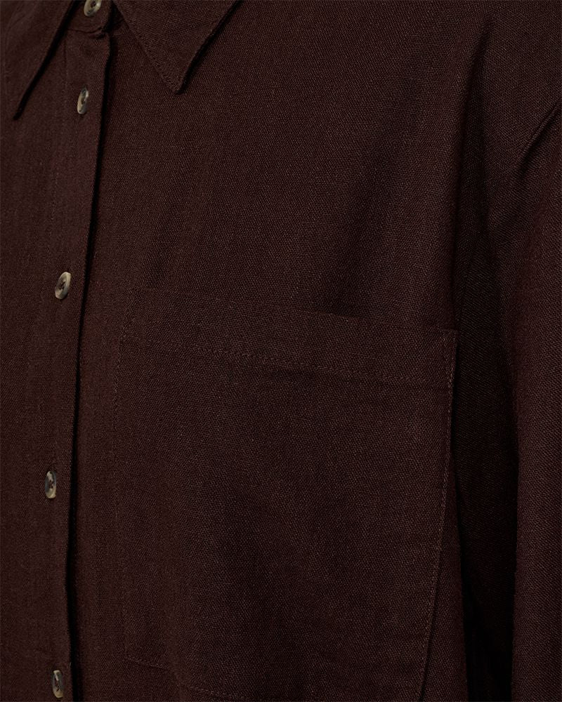FQLAVA-SH-SIMPLE skjorten i fargen Coffee Bean kombinerer stil og komfort. Laget av en blanding av lin og viskose, gir denne skjorten en lett og luftig følelse, perfekt for varme dager.