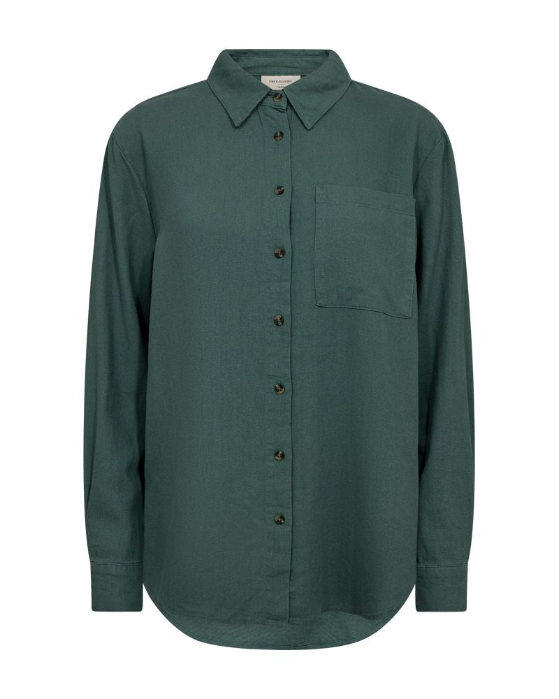 FQLAVA-SH-SIMPLE er en stilren skjorte i en dyp skoggrønn farge, perfekt for å tilføre et elegant preg til antrekket ditt. Laget av en blanding av lin og viskose, gir denne skjorten både komfort og stil.