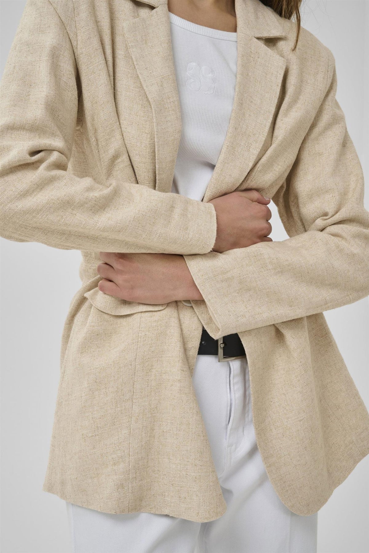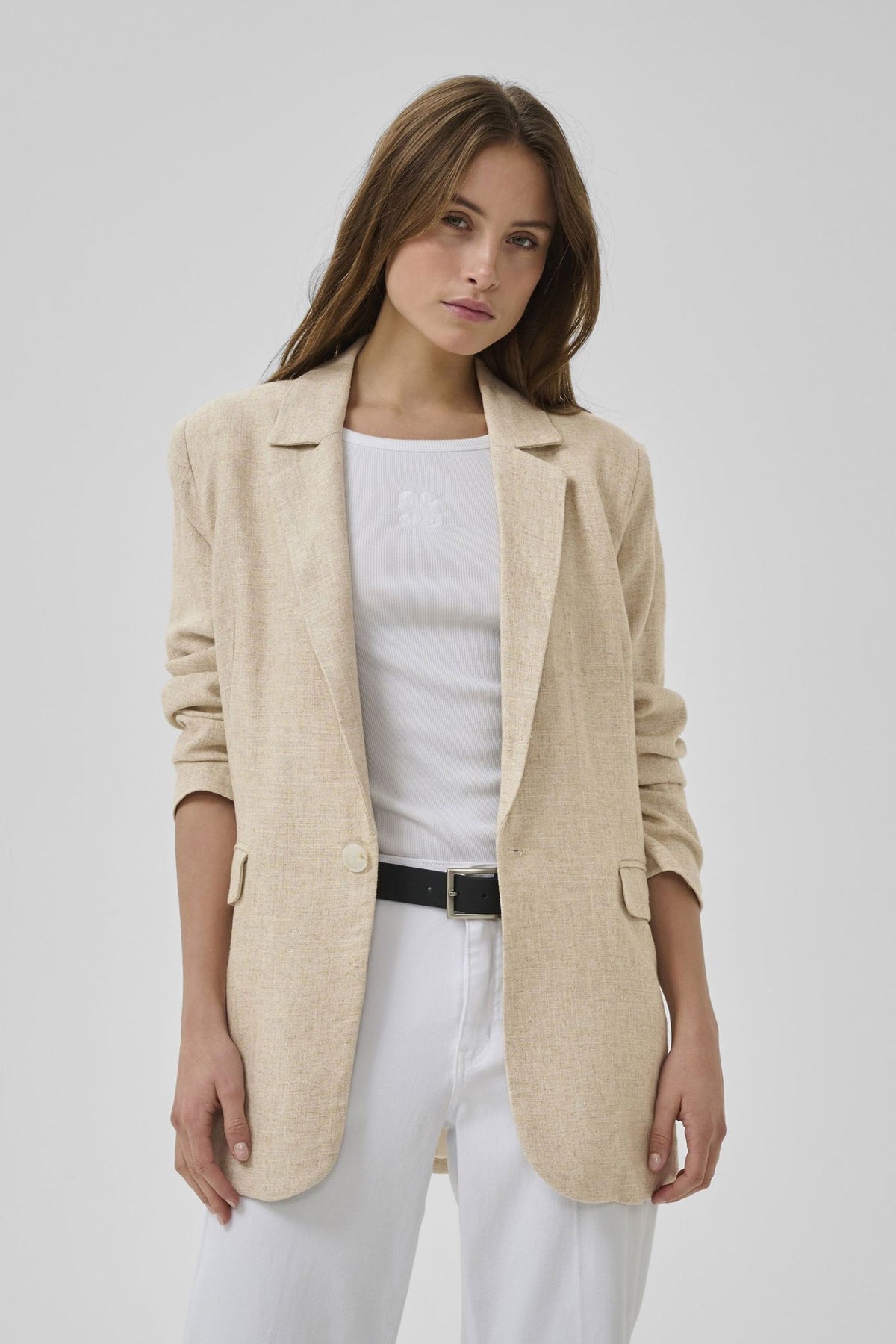 LavitaMW Blazer i Oatmeal Melange er et stilrent plagg som kombinerer komfort med en moderne look. Den casual fit og høyt liv gjør den perfekt for hverdagsbruk, samtidig som den tilfører et sofistikert preg til antrekket.