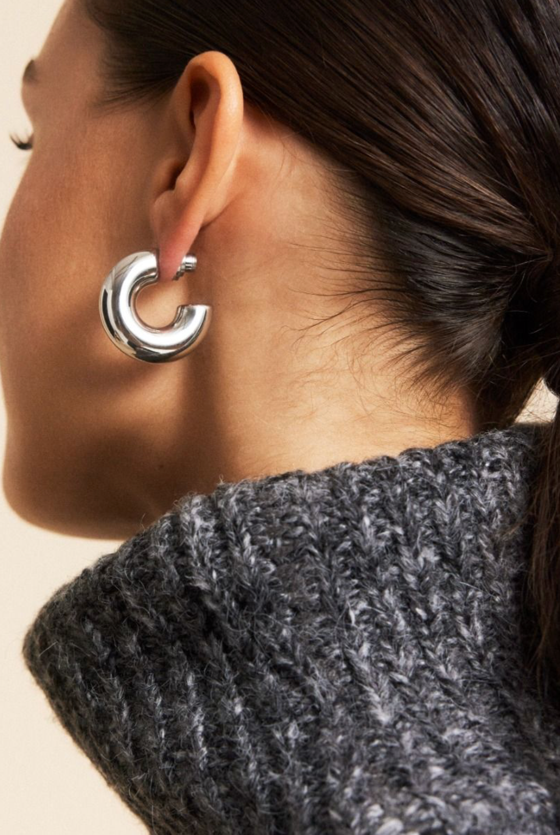 Chunky er trendy, store og voluminøse creoler som du kommer til å elske å bruke til alle anledninger. Chunky creoler L er vakre og enkle å bære ettersom de er hule. Her vises de i blankt rustfritt stål.